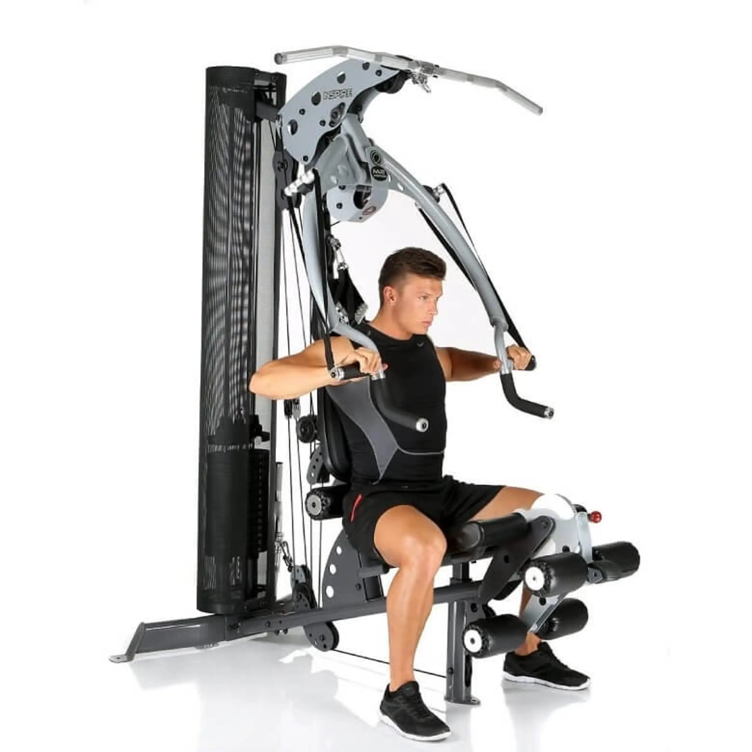 Posilňovacia veža FINNLO MAXIMUM M2 multi-gym je určená ako pre komerčné a klubové využitie, tak aj zákazníkov z radov domácností požadujúcich kvalitné spracovanie, vynikajúcu ergonómiu cvikov a moderný dizajn. Veža ponúka komplexné pretrénovanie celého tela desiatkami cvikov. Konštrukcia z akostnej ocele je robustná a vykazuje vysokú tuhosť, je opatrená je odolným práškovým lakom. Použité pevnostné oceľové lanká s ochrannou vrstvou majú vysokú nosnosť, spolu s nylonovými kladkami osadenými guličkovými ložiskami zaisťujú stroju nevídane plynulý a tichý chod.