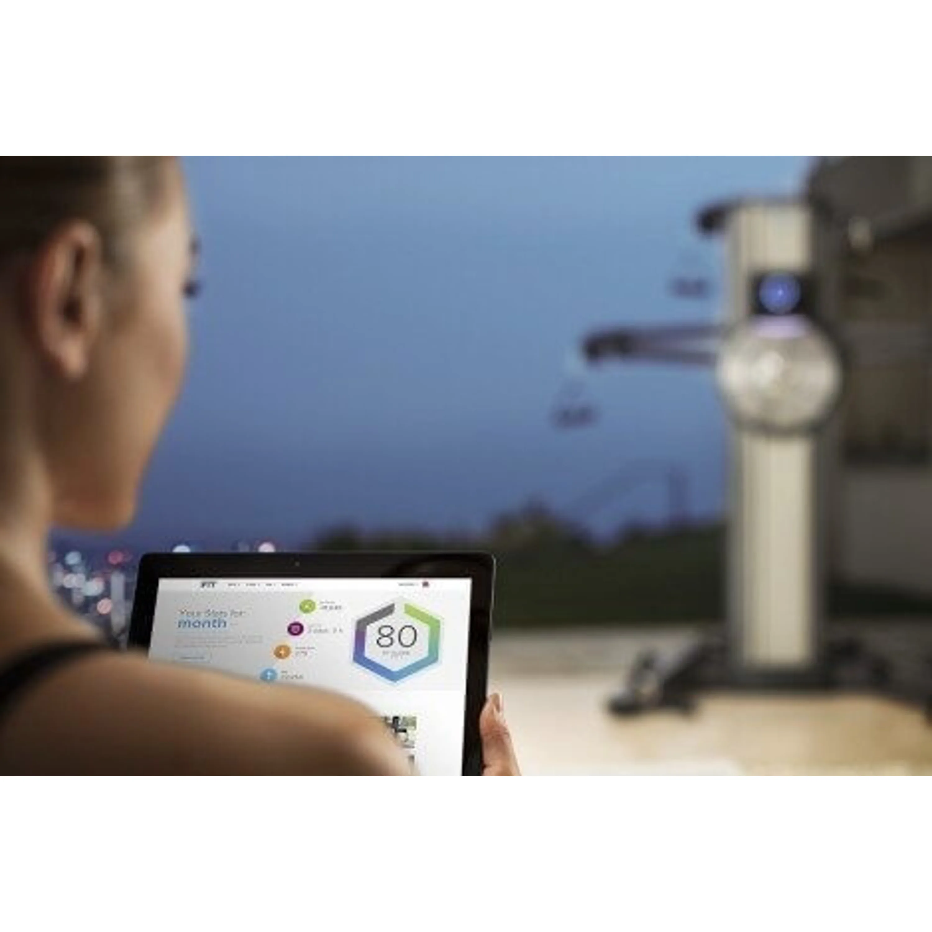 Ďalej ponúka prehľadný a ľahko ovládateľný computer s multifunkčným podsvieteným LED displejom a držiakom na tablet, ktorý sa ľahko ovláda a zobrazuje aktuálny výkon (WATT) a tepovú frekvenciu snímanú cez hrudný pás s bluetooth pripojením. aj tablet je súčasťou dodávky.