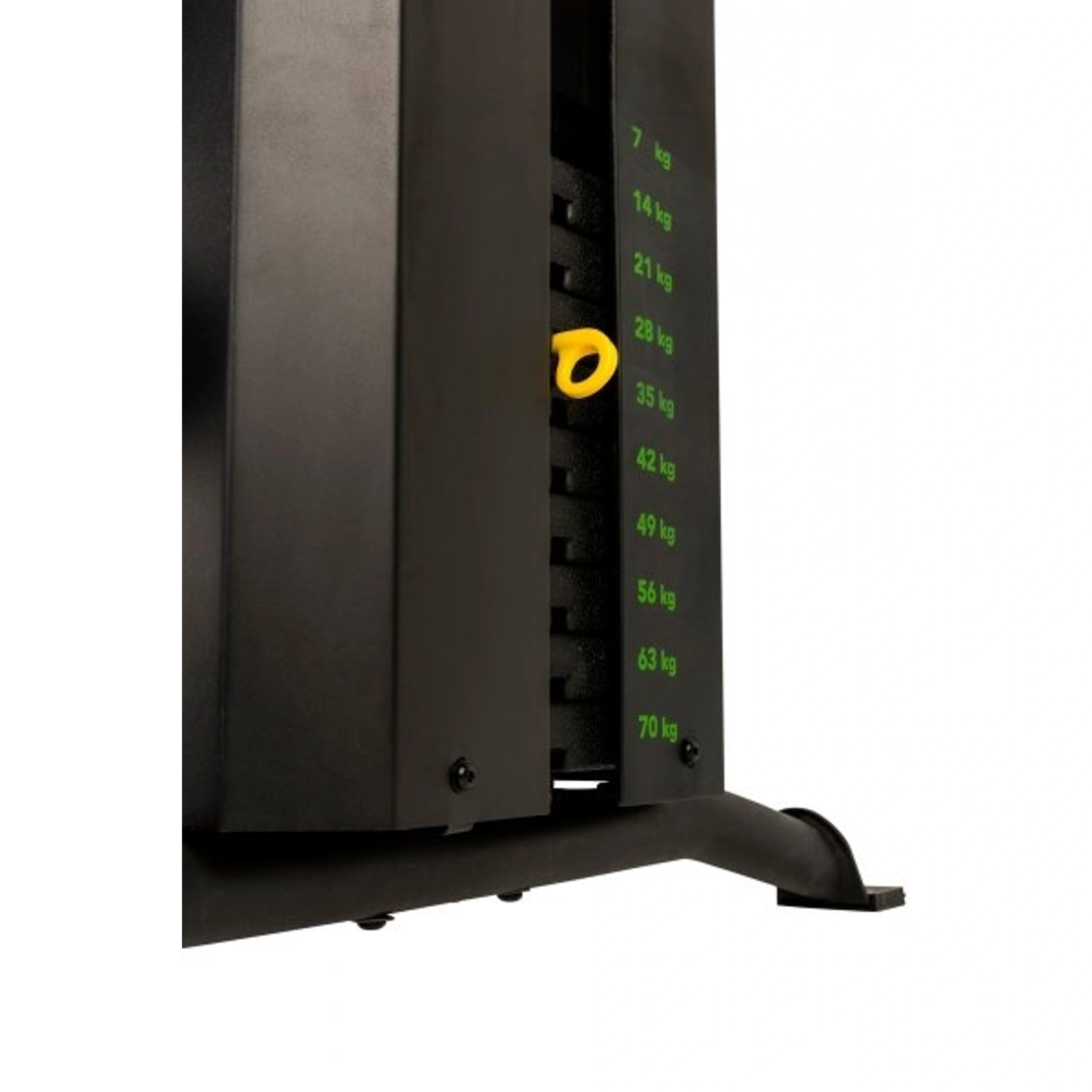 Posilovacia veža DELUXE vybavená zásobníkom s voliteľným závažím v celkovej hmotnosti 70 kg.