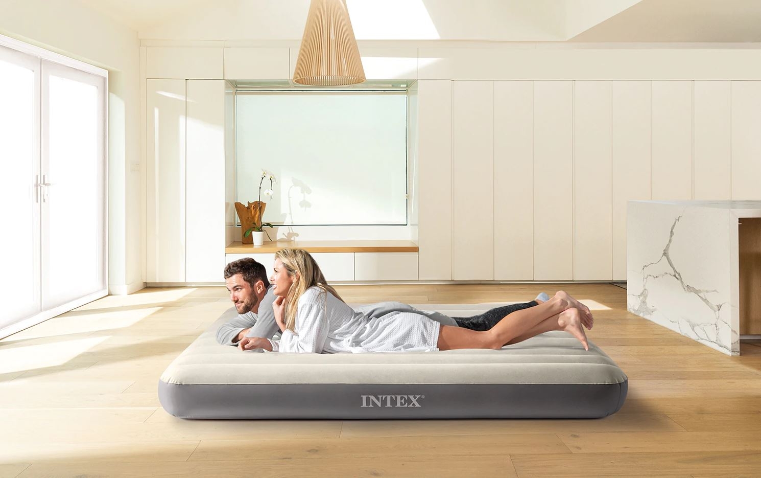 Nafukovacia posteľ vhodná pre 2 osoby, s integrovaným nafukovacím ventilom 2v1. Hrúbka steny je 0,53 mm, má kvalitné, príjemný semišový povrch. Posteľ je bez obsahu ftalátov. Špeciálne PVC s vonkajším semišovým poťahom zaručuje väčšiu odolnosť proti prepichnutiu postele. Pozdĺžne výstuhy zaručujú vyššiu pevnosť, tuhosť a pohodlie pri ležaní. Technológia výstuh Dura-Beam.