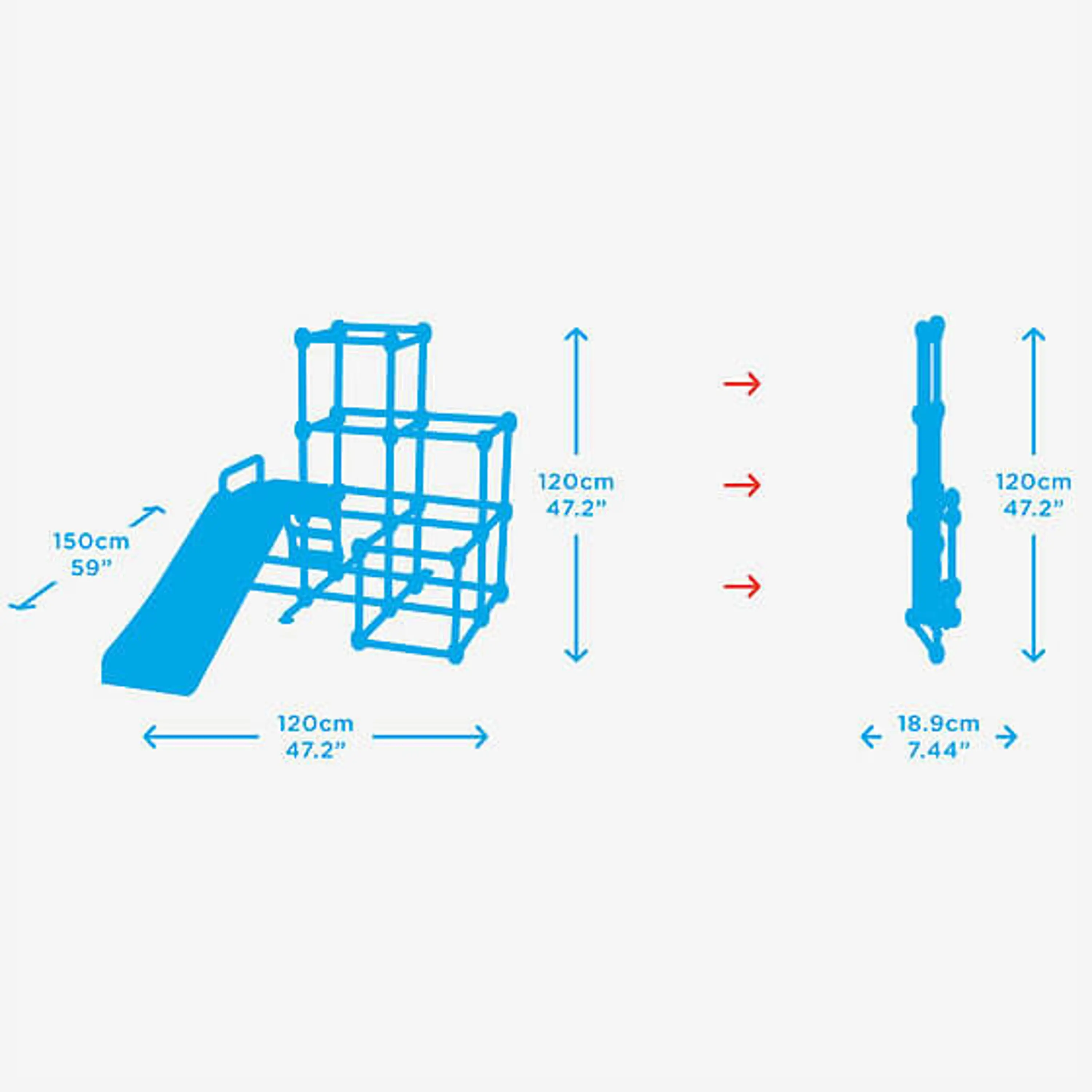 Montáž a skladovanieZostavenie preliezačok je intuitívne a rýchle. Všetky diely do seba ľahko zapadnú, a to bez použitia náradia. Rovnako ľahko sa aj zloží a uskladní napríklad pod posteľ. |