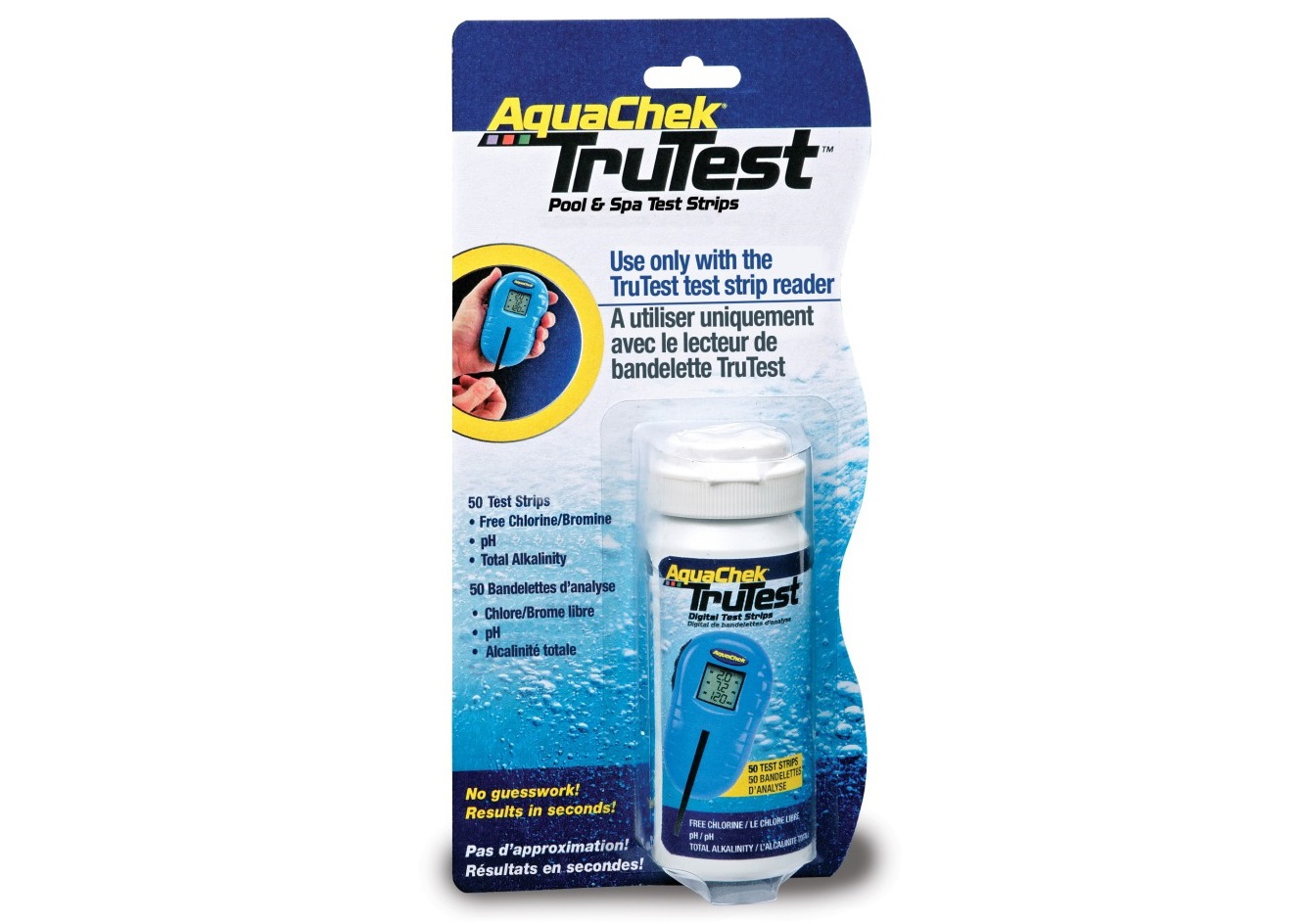 AquaChek -testovací prúžky voľný chlór , pH a celk . alkalita pre digitálne čítačku . V balení je 50 ks testovacích prúžkov .