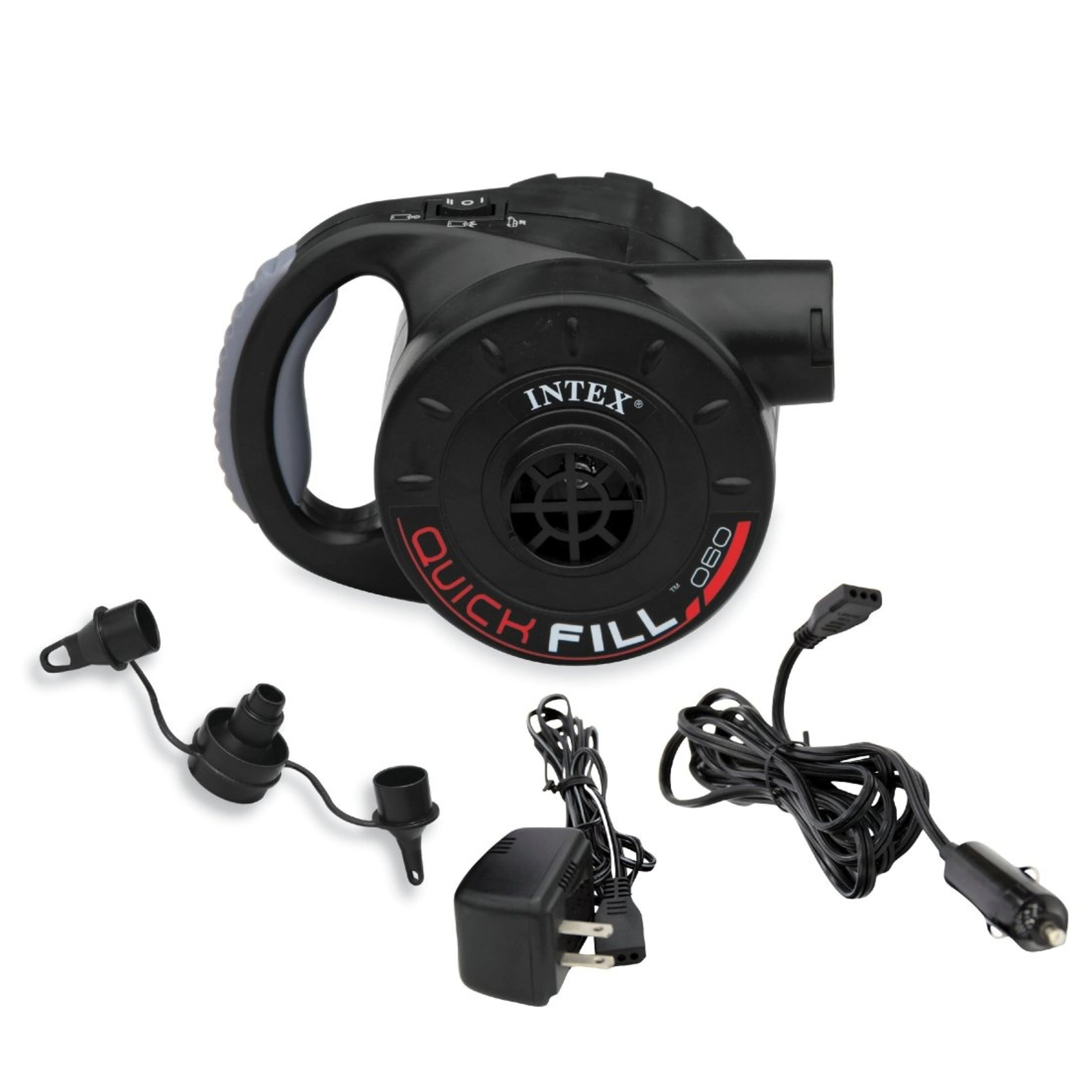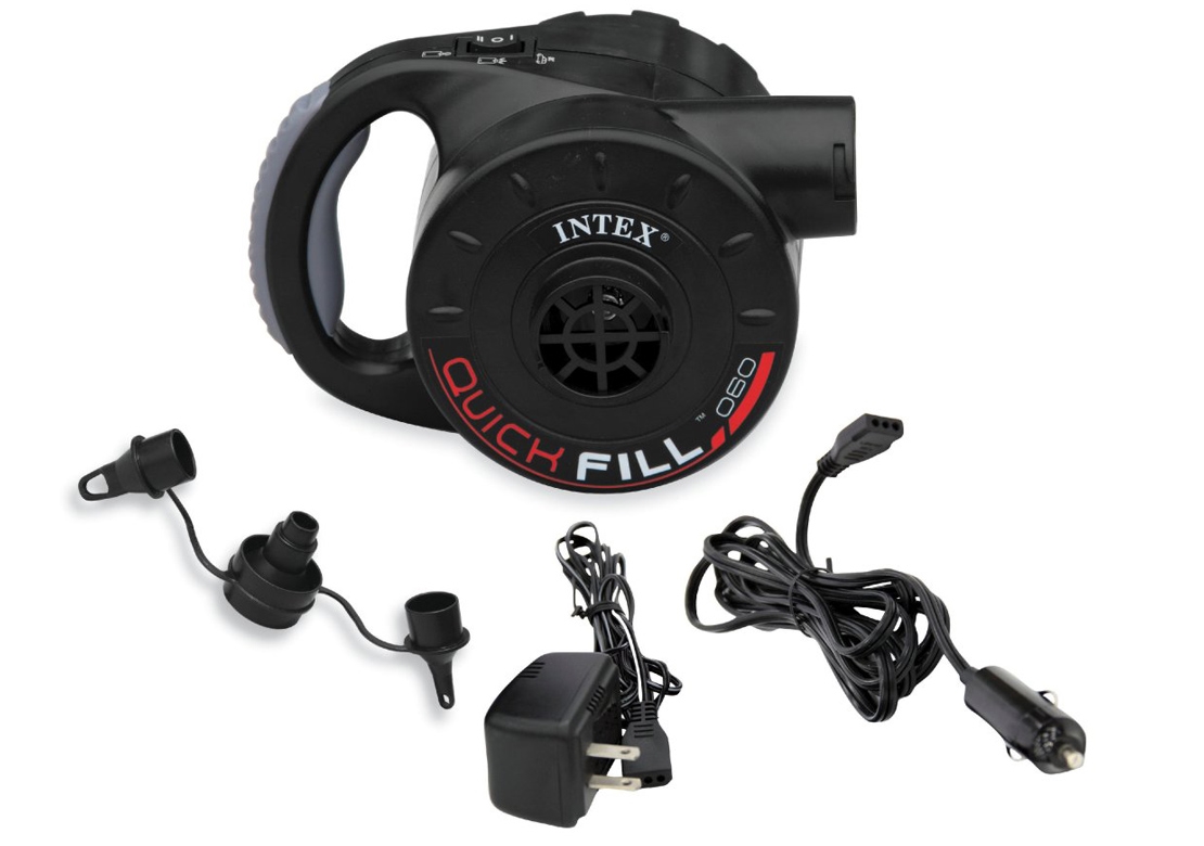 Elektrická dobíjacia pumpa, je vďaka 3 nástavcom vo výbave vhodná pre nafukovanie lehátok, matracov, ale aj člnov a bazénikov.