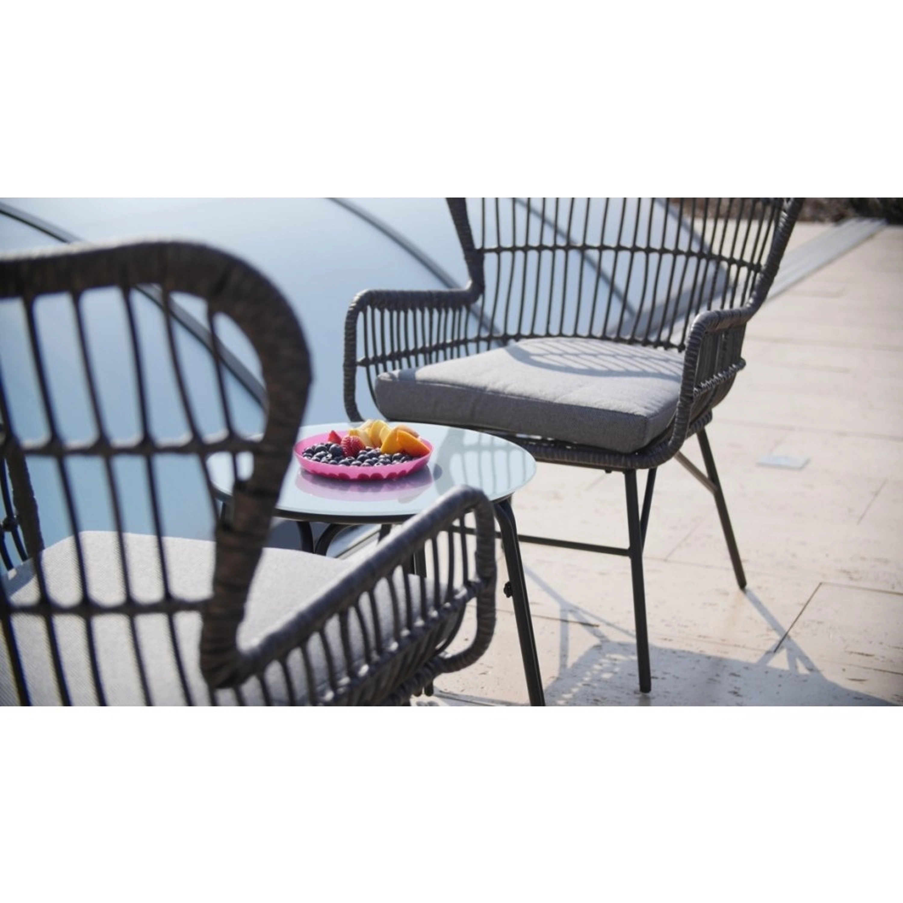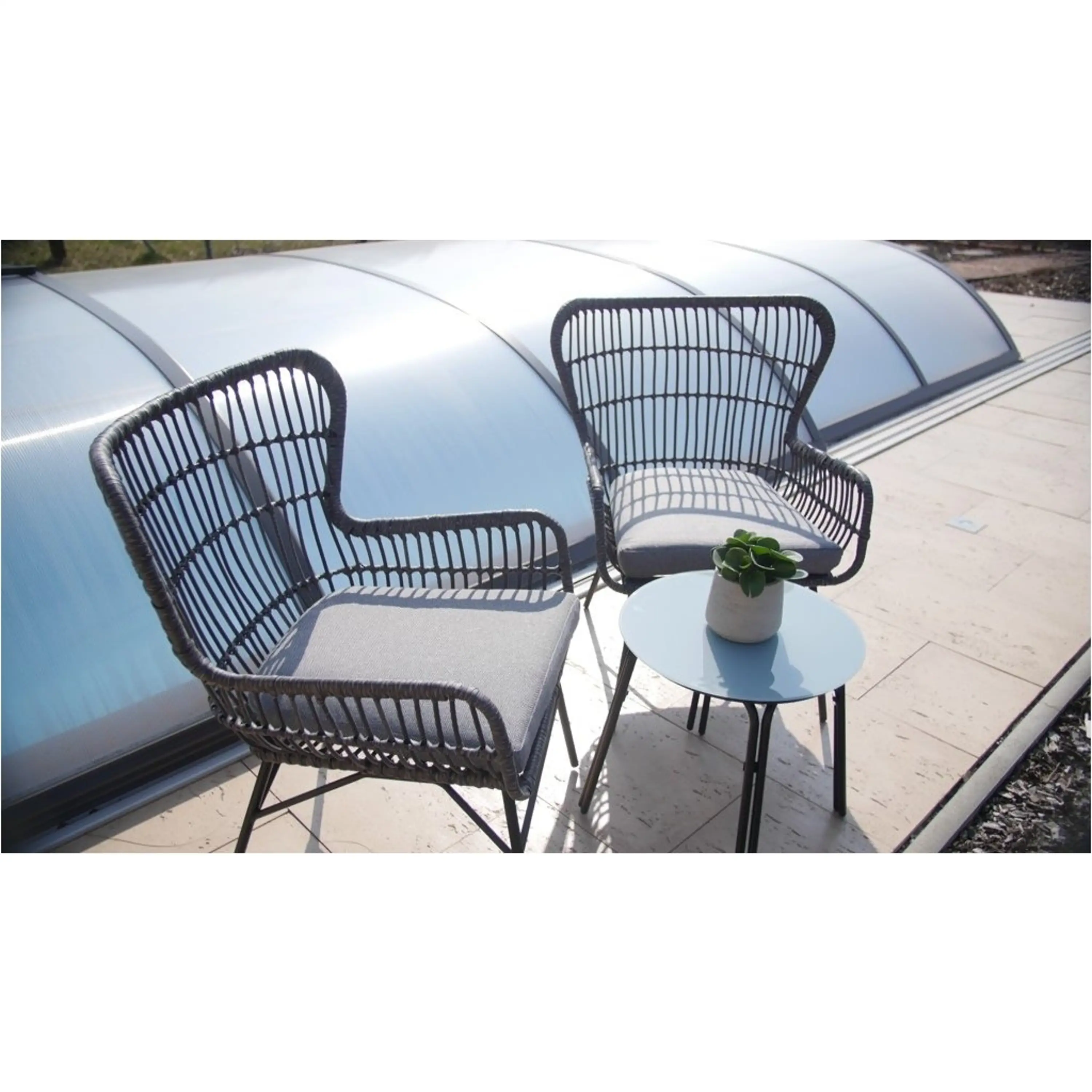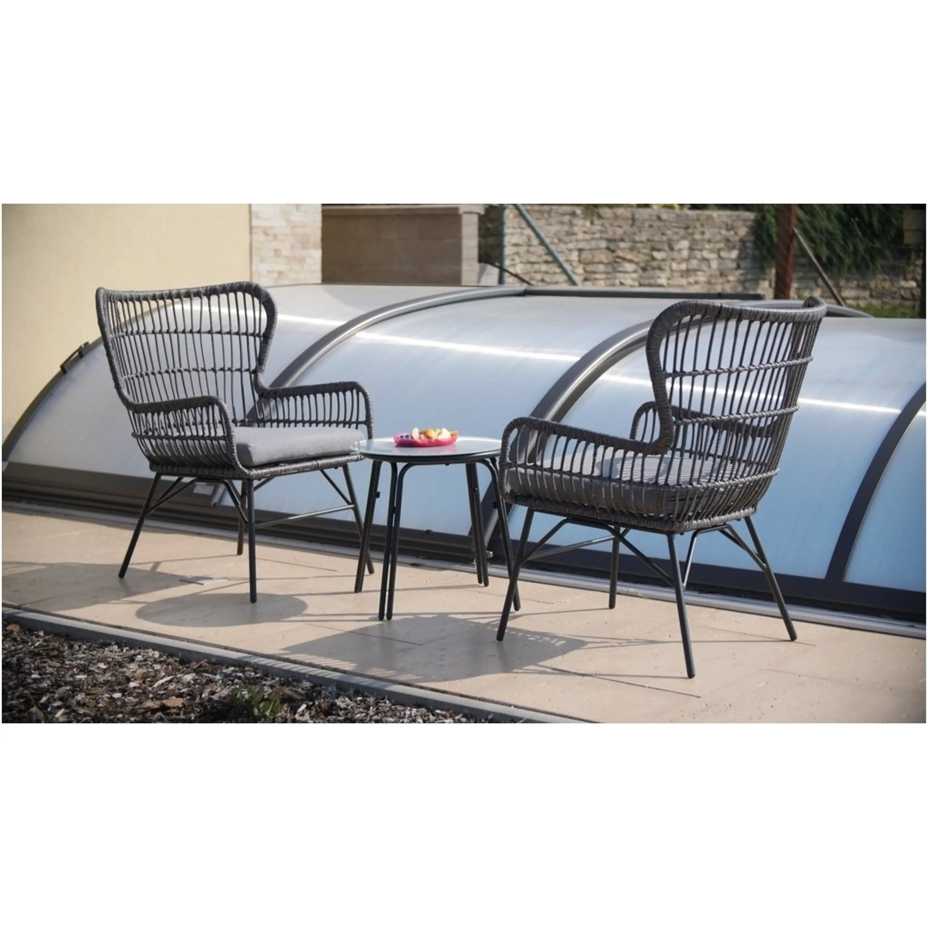 Sada RINDAL obsahujúca dve pohodlné kreslá a praktický stolík. RINDAL je set dvoch vysoko pohodlných kresiel vhodný na umiestnenie v interiéri aj exteriéri. Súčasťou je aj praktický stolík s odkladacou plochou z keramického skla. Dizajn v provensálskom štýle vytvára romantickú atmosféru pre posedenie vo dvojici.