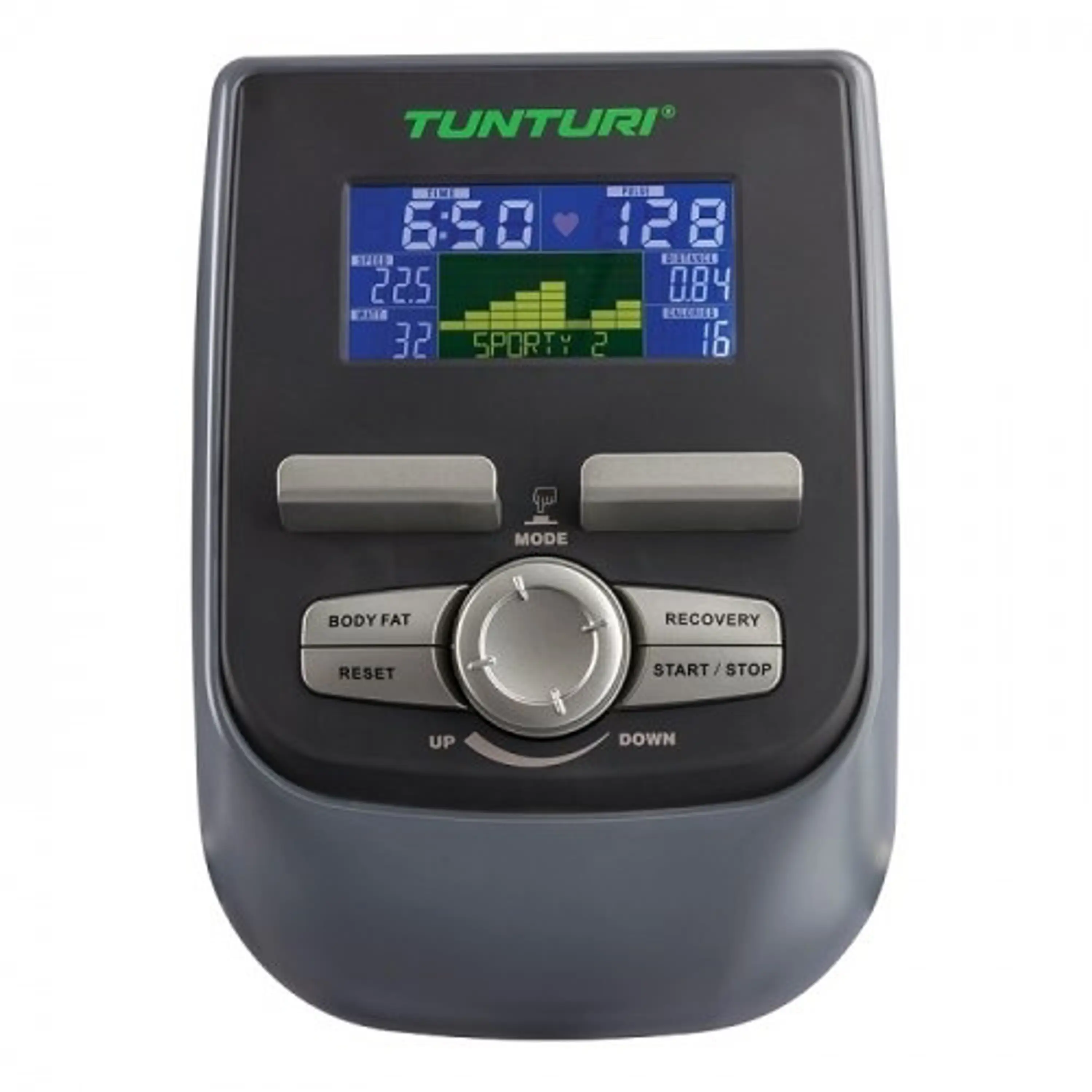 TUNTURI E50-R Bike Performance je vybavený prehľadným počítačom s jednoduchým ovládaním. Trenažér má 5,5 LCD displej a napájanie trenažéra je cez externú sieť. adaptér 9V. Meria čas, rýchlosť, spálené kalórie, vzdialenosť, frekvenciu otáčok a srdcový tep prostredníctvom dlaňových snímačov na riadidlách, prípadne cez hrudný pás s frekvenciou 5-5,4 kHz (pás nie je súčasťou dodávky, ale je možné ho dokúpiť) . Z programovej ponuky ponúka dohromady 20 variant programov az toho 4x HRC programy, 12 x prednastavených programov, Watt program (10-350 stupňov, krok po 5), prípadne režimy ako recovery, bodyfat a pod.