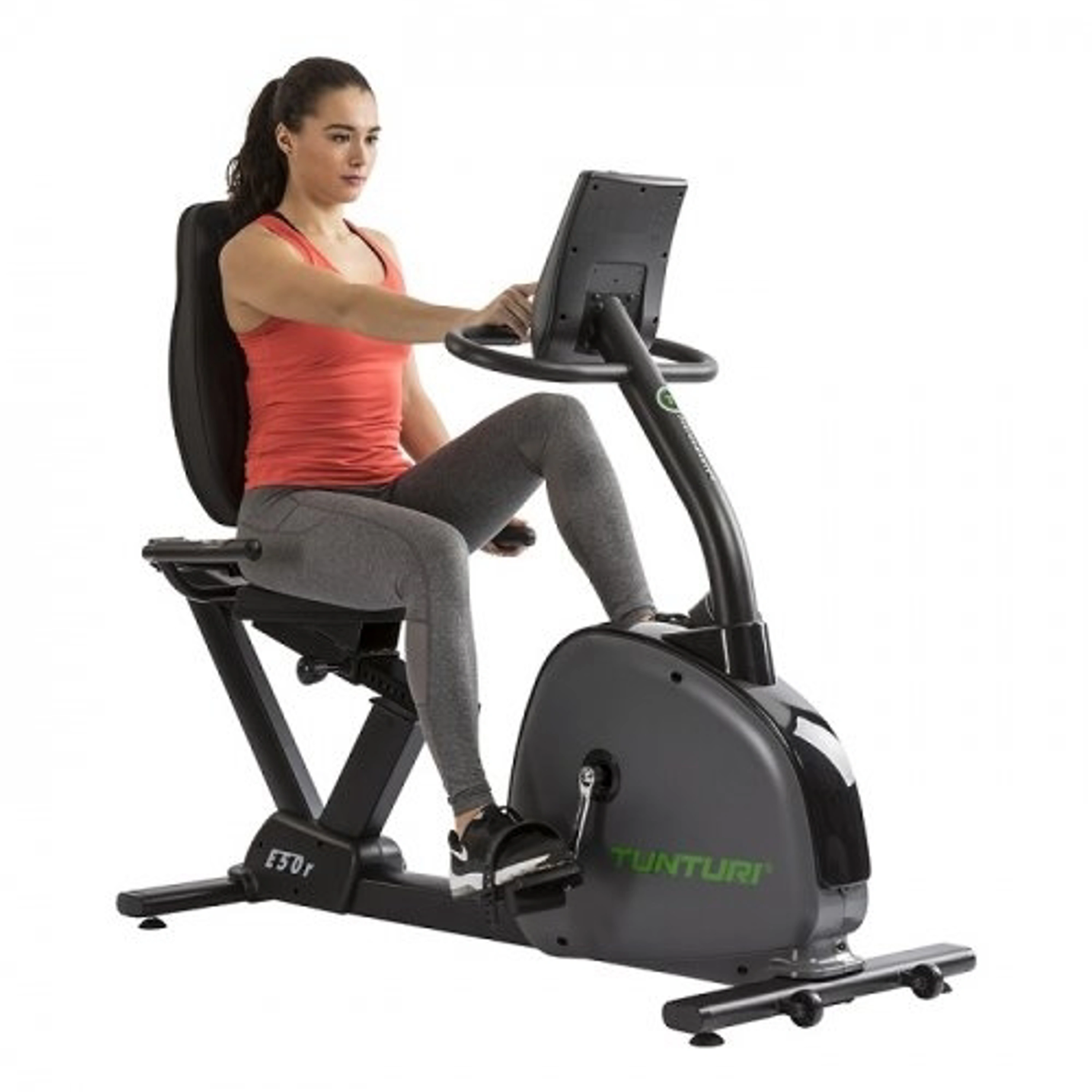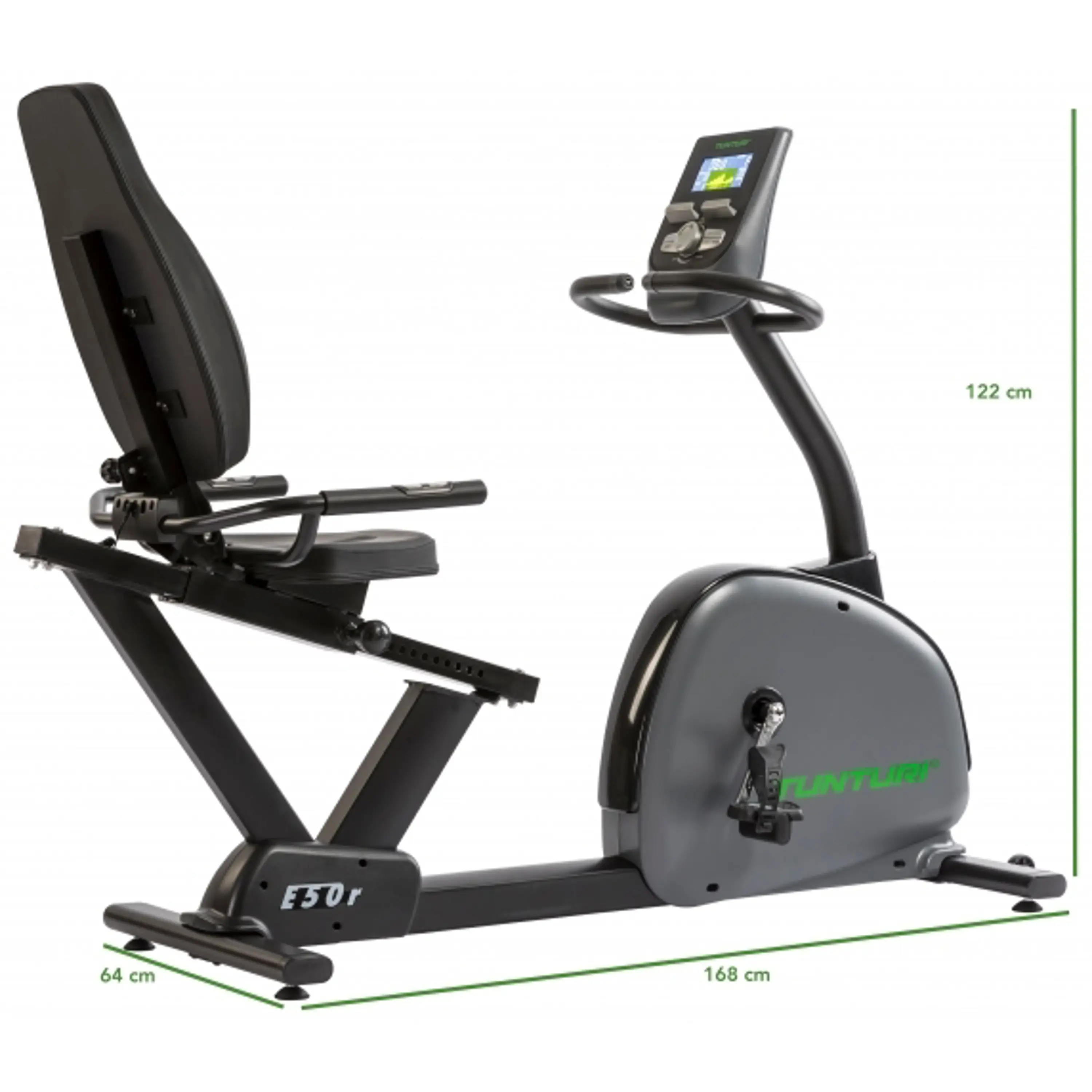 Horizontálny rotopéd TUNTURI E50-R Bike Performance z novej rady ponúka zákazníkom kombináciu vynikajúcej mechaniky a ergonómie rámu za solídnu cenu. Rámová konštrukcia zaručí pohodlný a správny posed ako pre drobnejšie, tak aj vyššie postavy s tým, že má nastaviteľné sedlo. Horizontálny rotopéd, čiže recumbent sa využíva primárne pre rehabilitácie a osoby s horšou hybnosťou. Stabilná a masívna konštrukcia spolu s kvalitnými komponentmi zaručuje dlhú životnosť stroja aj pri využití ťažšími osobami a predurčuje model aj pre pravidelný kondičný tréning. Šliapanie na ňom je práve vďaka magnetickému brzdnému systému a kvalitnej mechanike úplne tiché. Stroj je určený na domáce využitie, zotrvačník s voľnobehom s hmotnosťou 11 kg, ktorý zaručuje plynulý chod rotopedu. Odpor je riadený elektronicky v 32 stupňoch od nuly až do maxima. Masívny rám ponúka nosnosť 135 kg. Súčasťou je aj držiak na tablet, či šikovný telefón. Trenažér disponuje transportnými kolieskami pre ľahšiu manipuláciu v priestore a vyrovnávači nerovnosti.