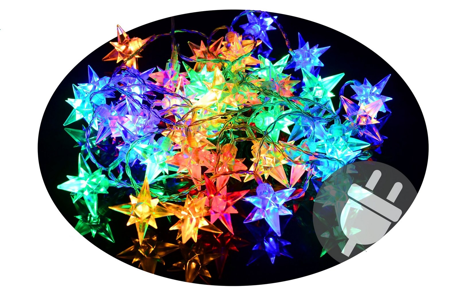 Tieto farebné LED hviezdy vykúzlia slávnostnú a čarovnú atmosféru na vašej záhrade či v domove. Reťaz je možné používať po celý rok. LED svetlá môžu ušetriť až 80% energie v porovnaní s bežnými žiarovkami! Nevyžarujú teplo a sú odolné proti otrasom.