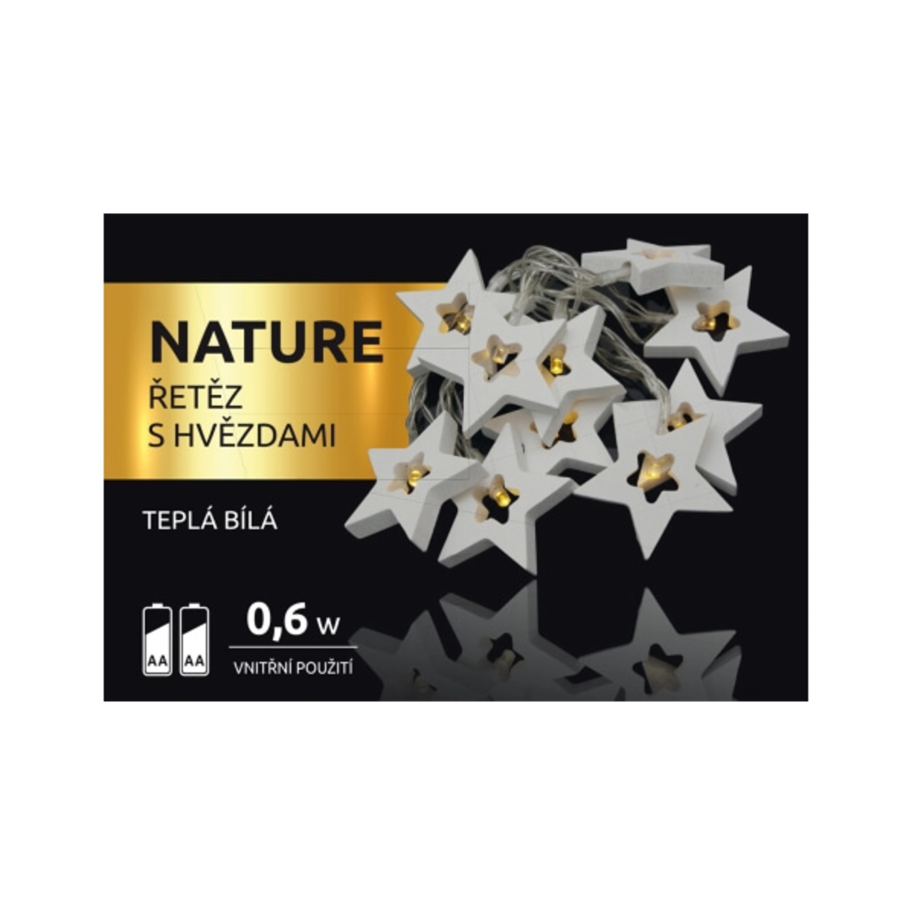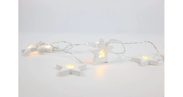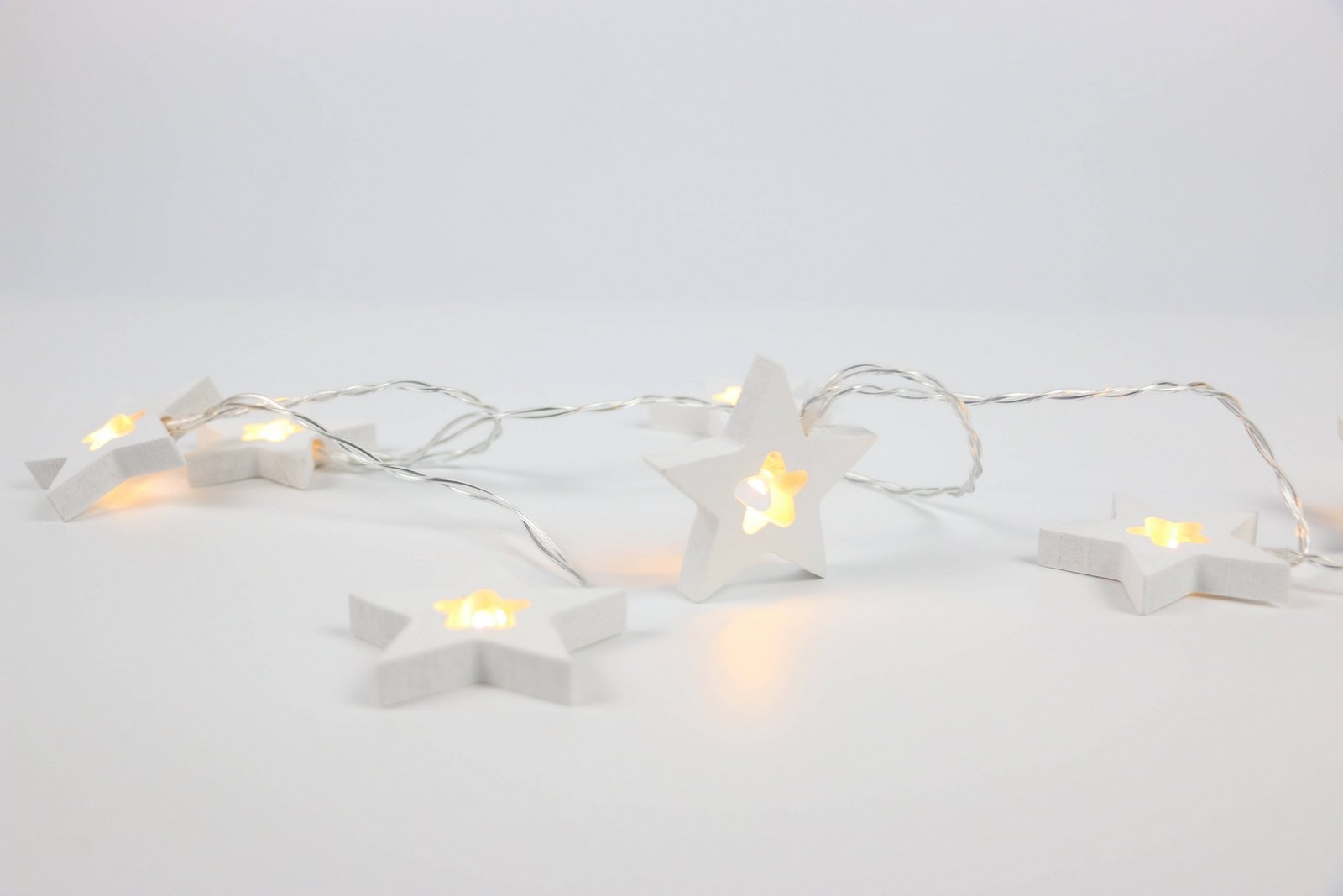 Krásna drevená reťaz s hviezdami, ktorá vďaka zabudovaným diódam rozžiari Vašu miestnosť. Reťaz má 10 hviezd, ktoré žiaria teplou bielou farbou.