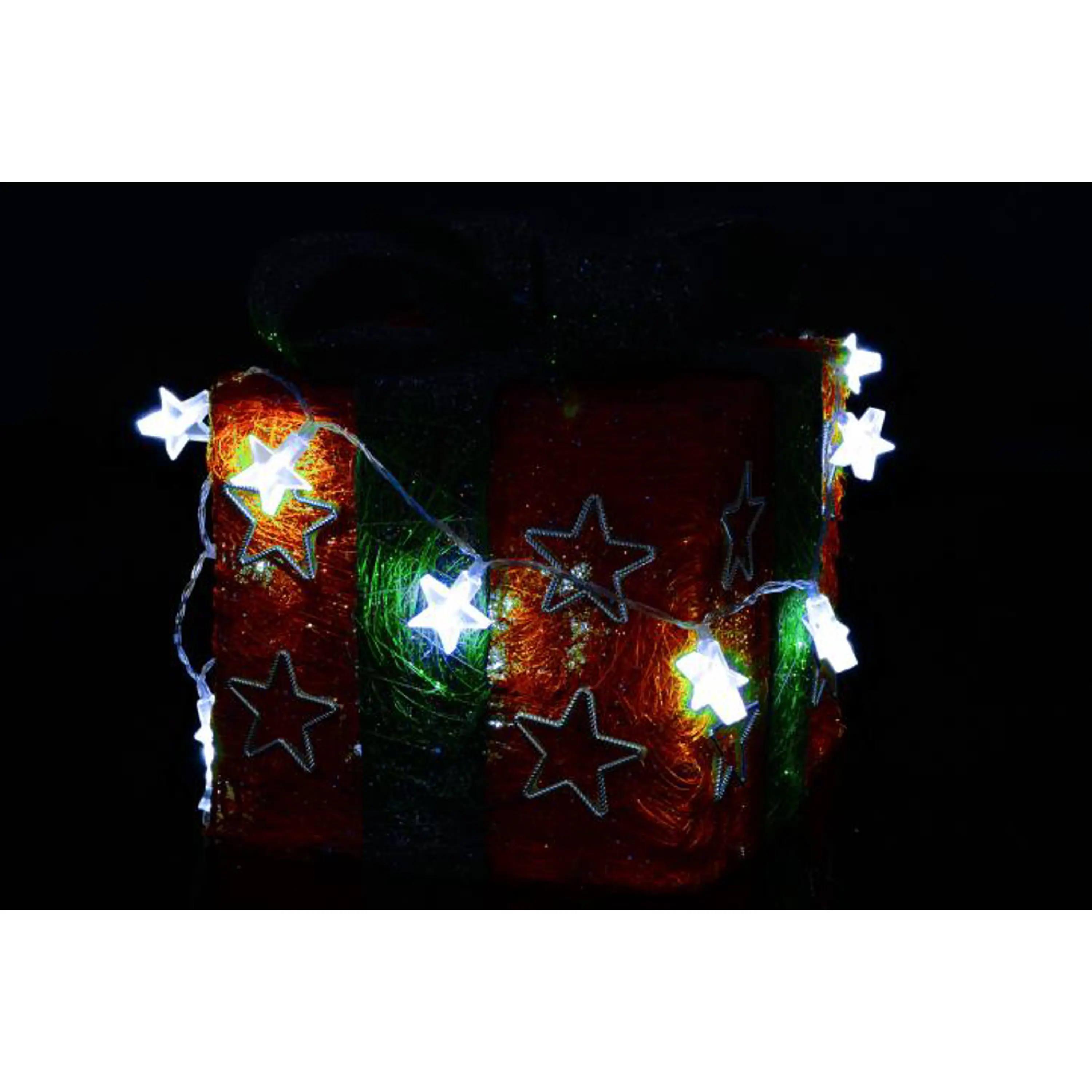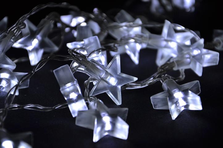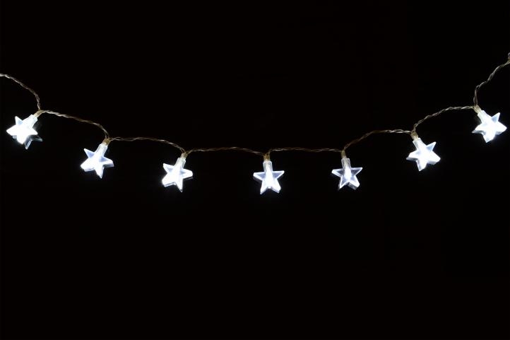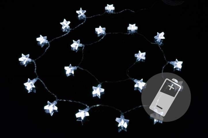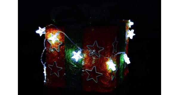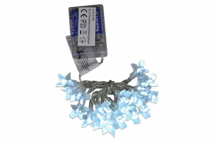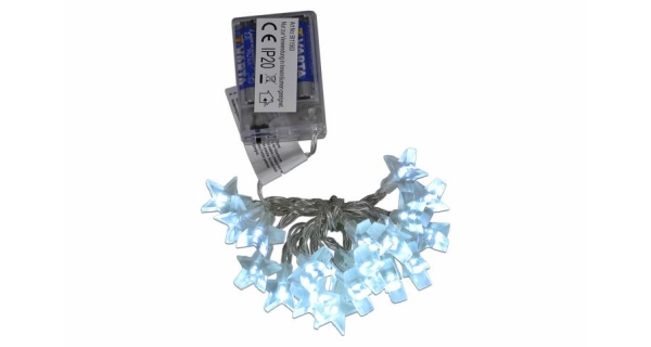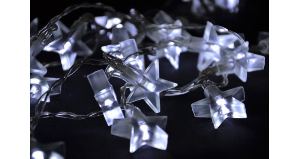 Toto prekrásne dekoratívne osvetlenie vnesie do Vášho domova kúzelnú zimnú atmosféru. Vďaka LED technológii nemusíte meniť žiarovky, sú odolné proti otrasom a nevyžarujú žiadne teplo. Svetelná reťaz je napájanie pomocou batérií a svieti na nej 20 studeno bielych LED diód.