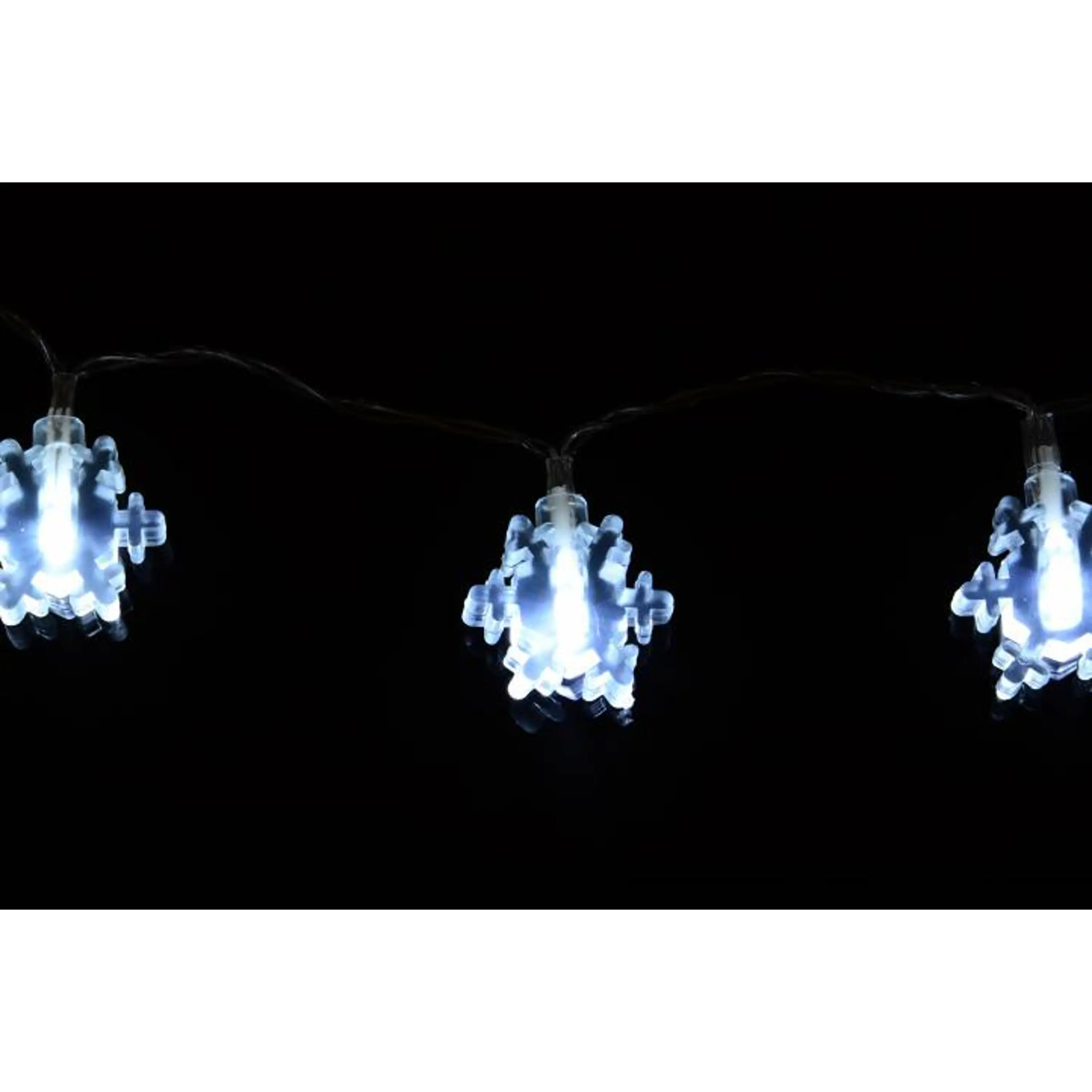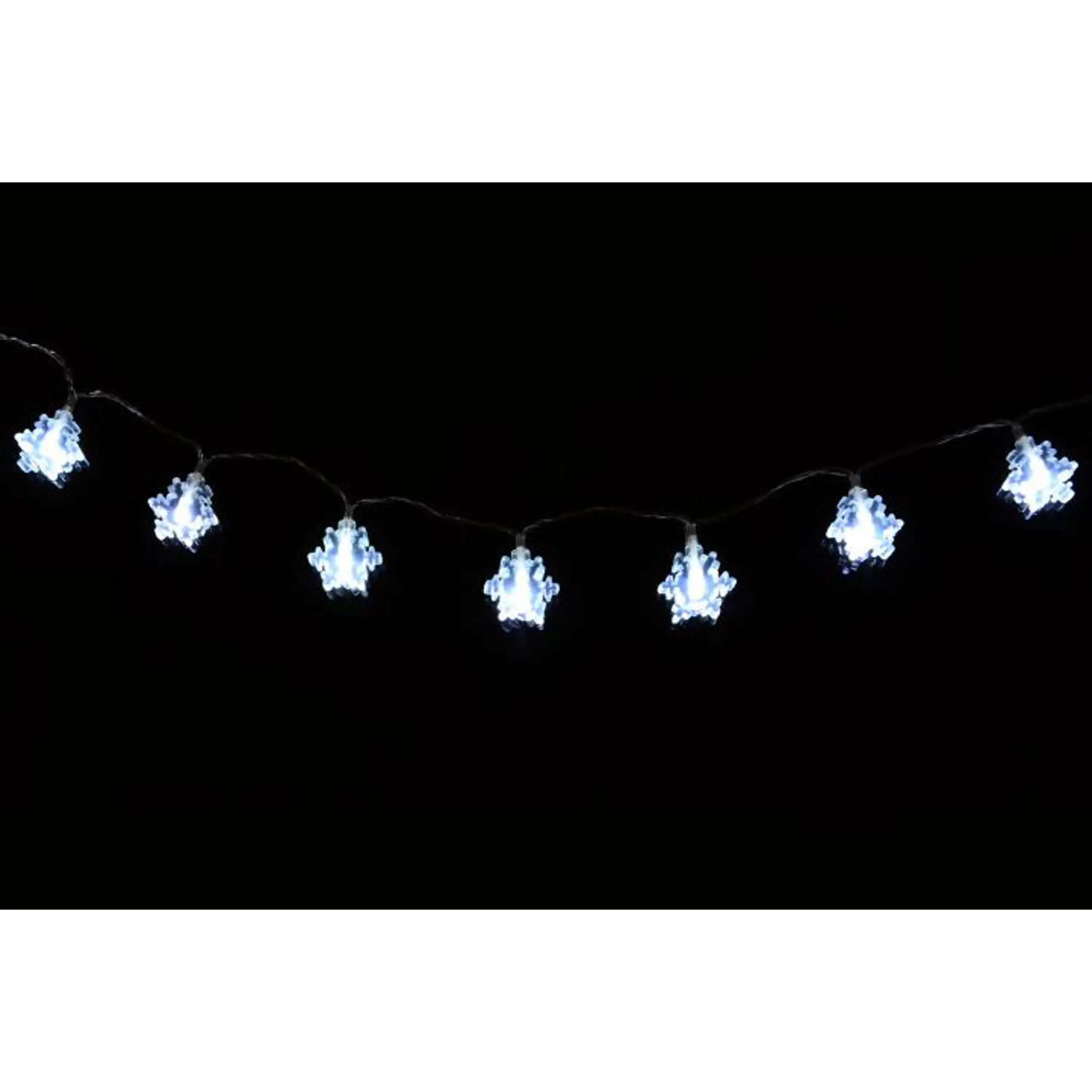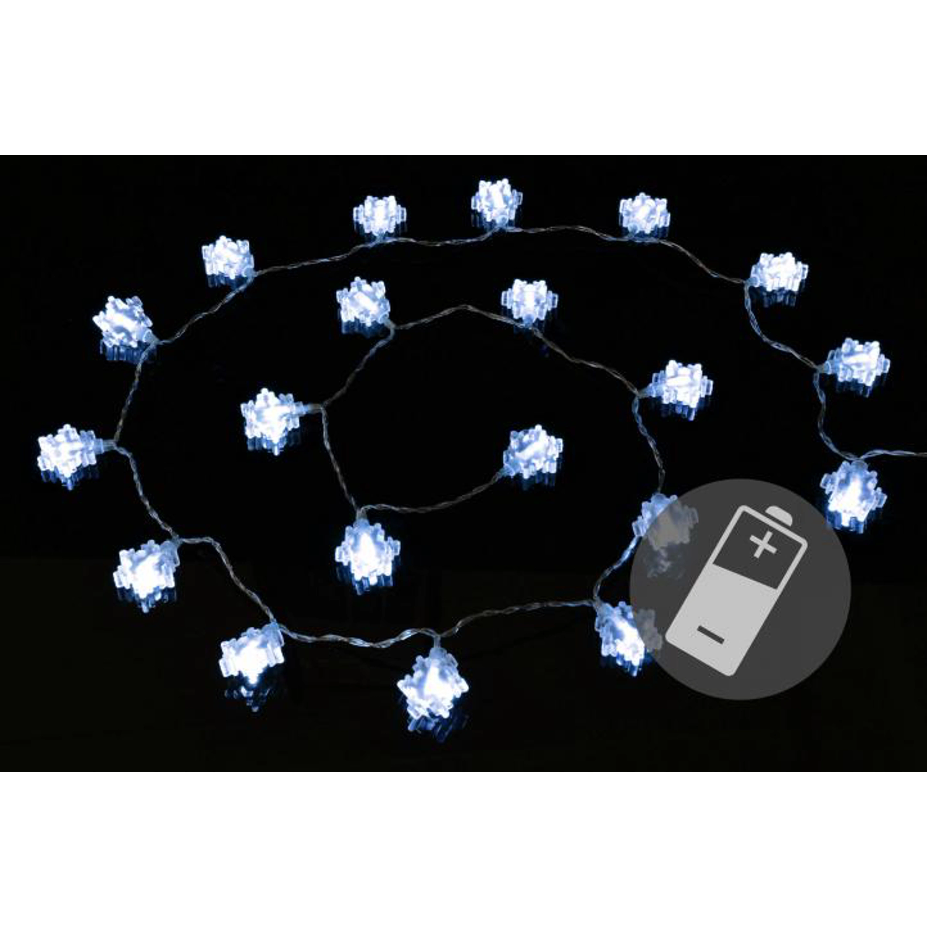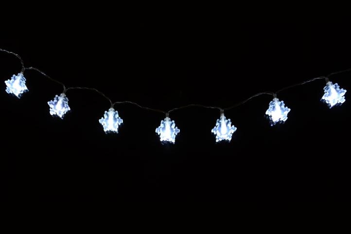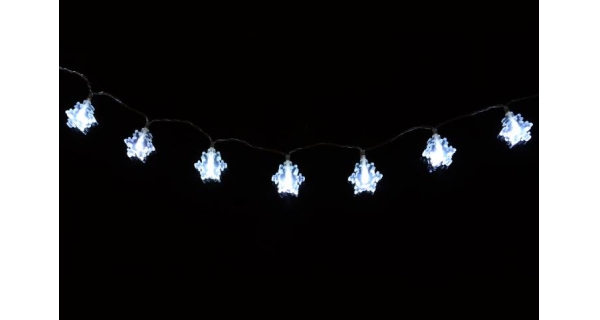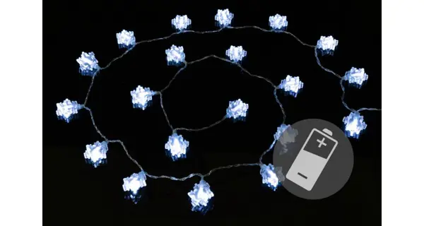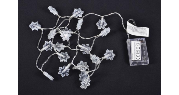 Toto prekrásne dekoratívne osvetlenie vnesie do Vášho domova kúzelnú zimnú atmosféru. Vďaka LED technológii nemusíte meniť žiarovky, sú odolné proti otrasom a nevyráža žiadne teplo. Svetelný reťaz je napájanie pomocou batérií a svieti na ne 20 LED diód studeno bielych. Vhodné iba pre vnútorné použitie.