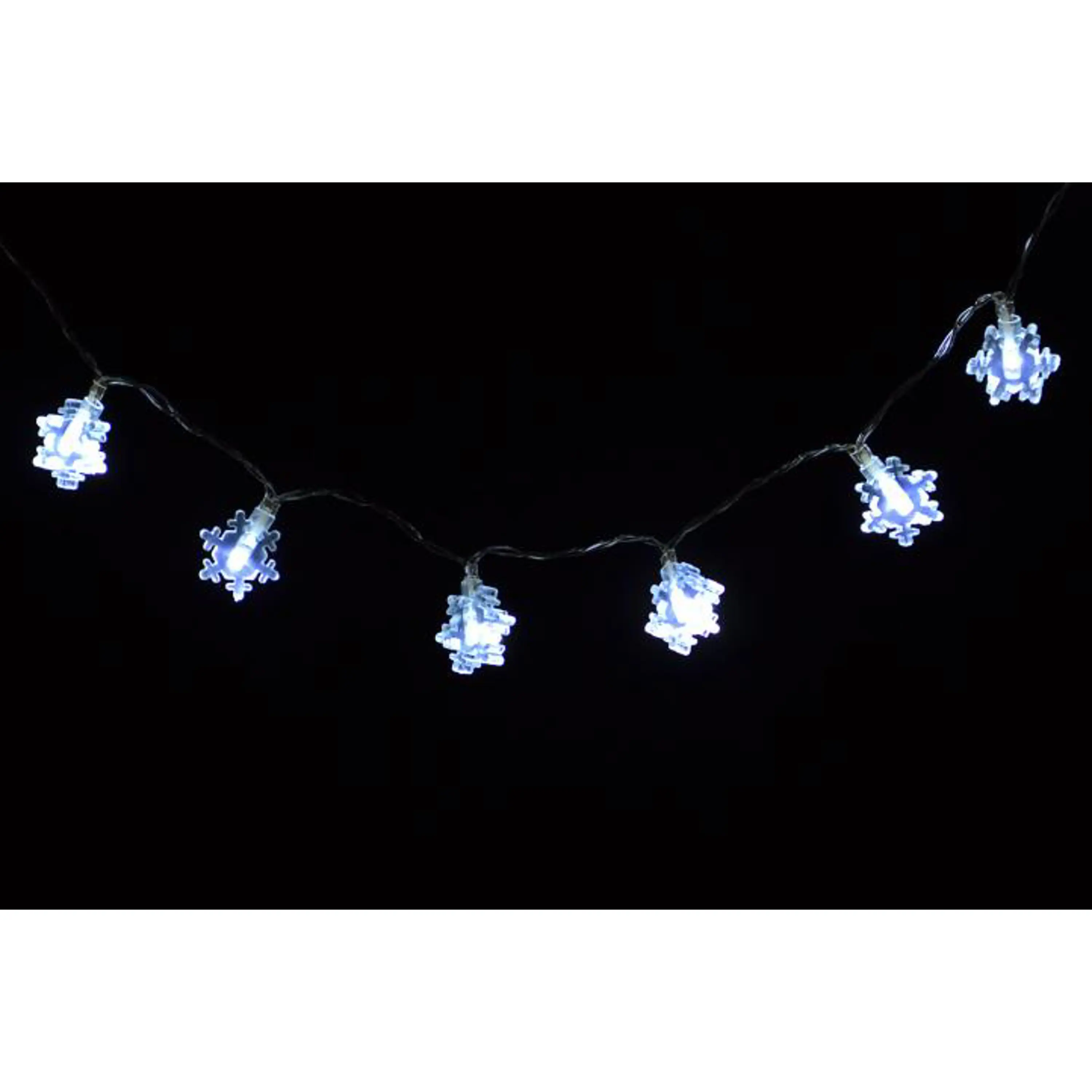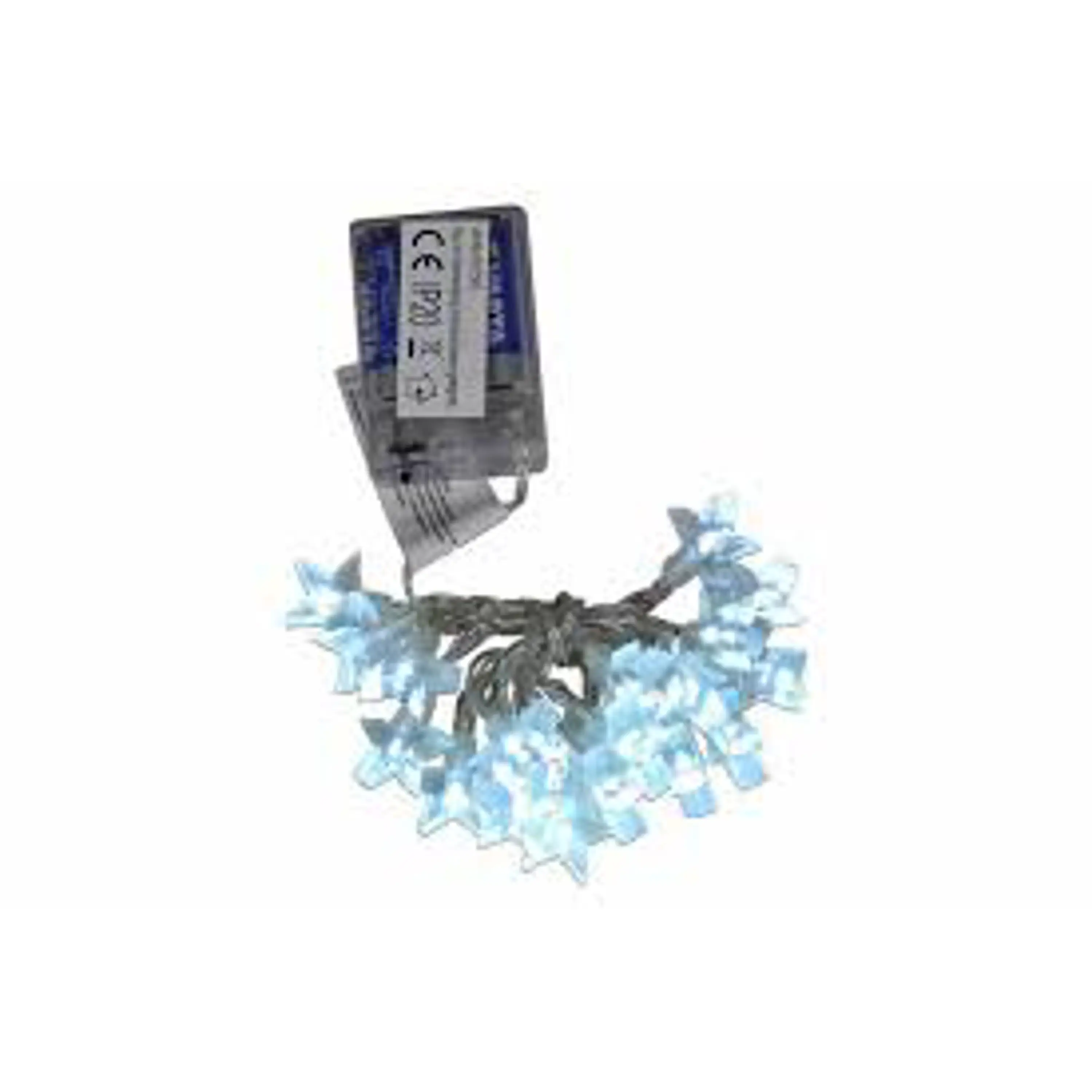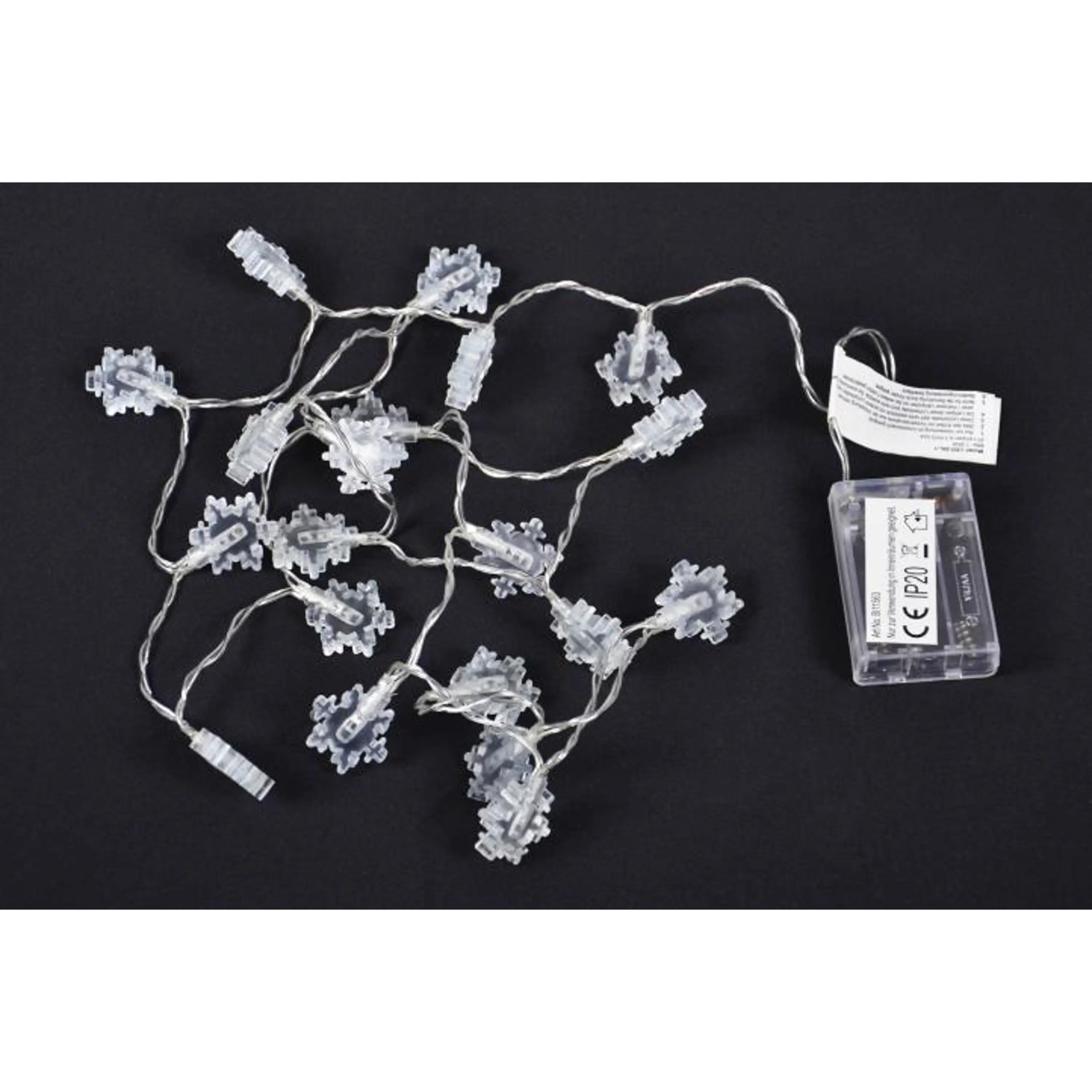 dĺžka kábla: 1,80m LED: 20 diód osvetlenie: studená biela dĺžka napájacieho kábla: 0,25m farba: transparentná rozostupy medzi vločkami: 8cm napájanie: 3xAA spotreba energie: 3,0 V / 0,02 A = 1,2 W ochrana napájania: IP20