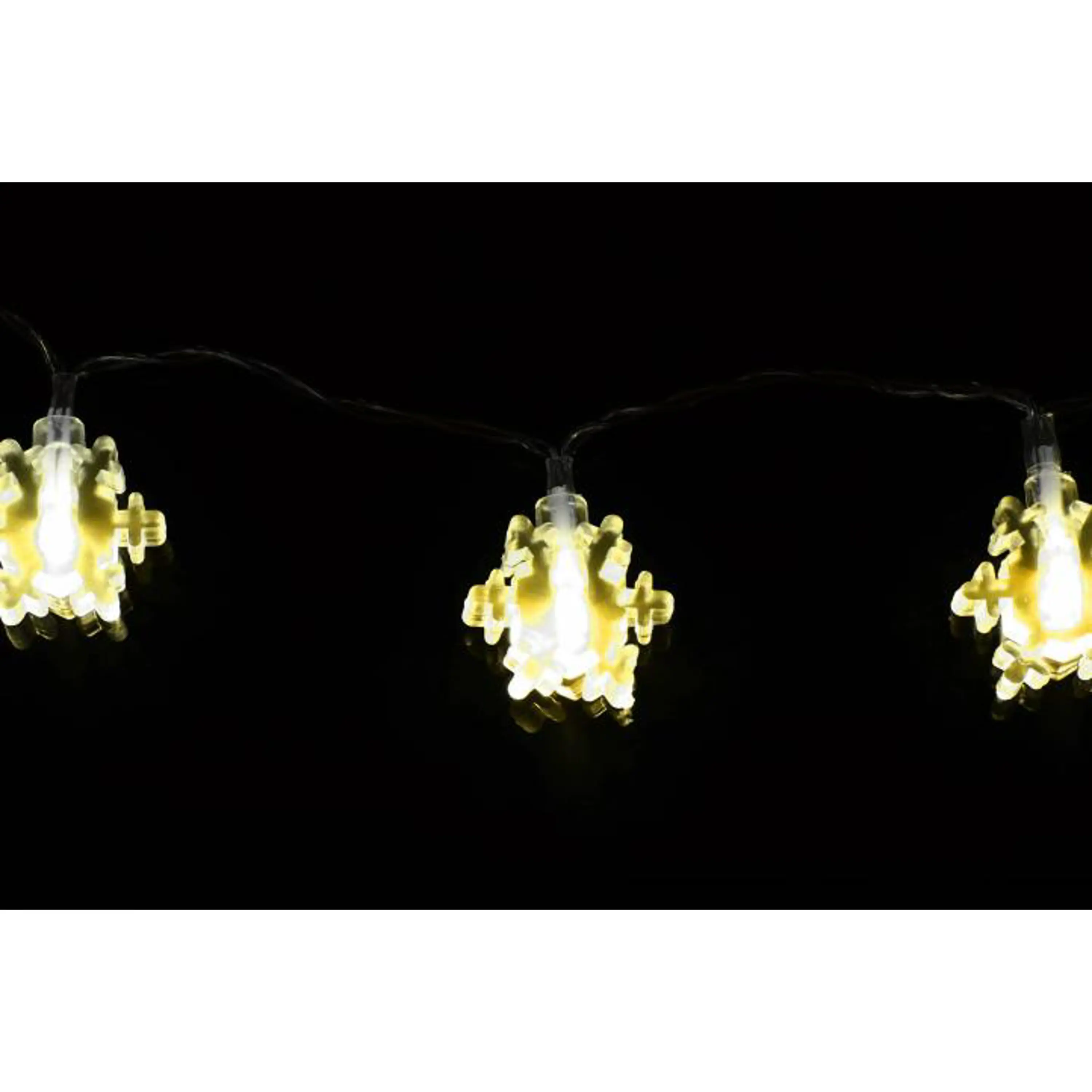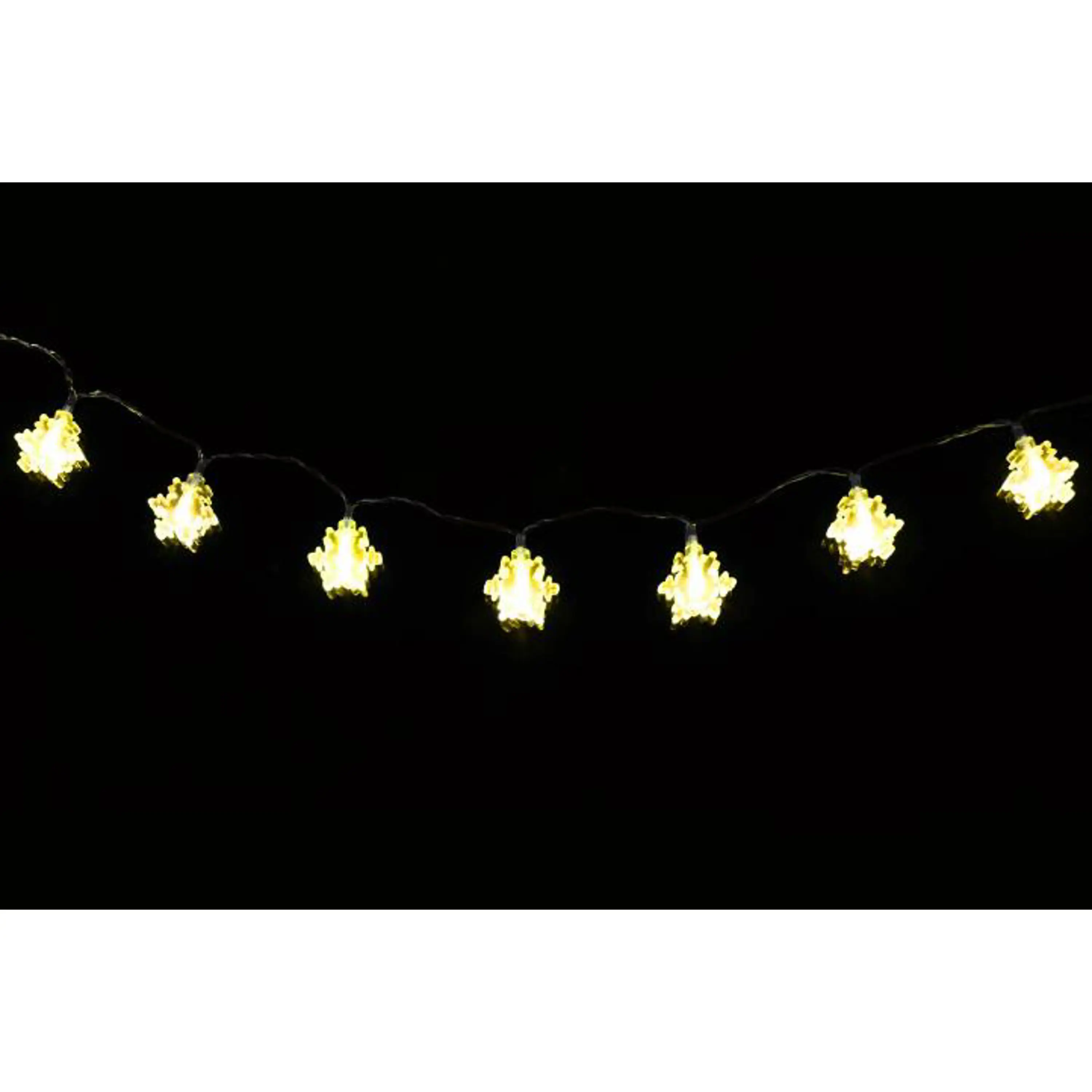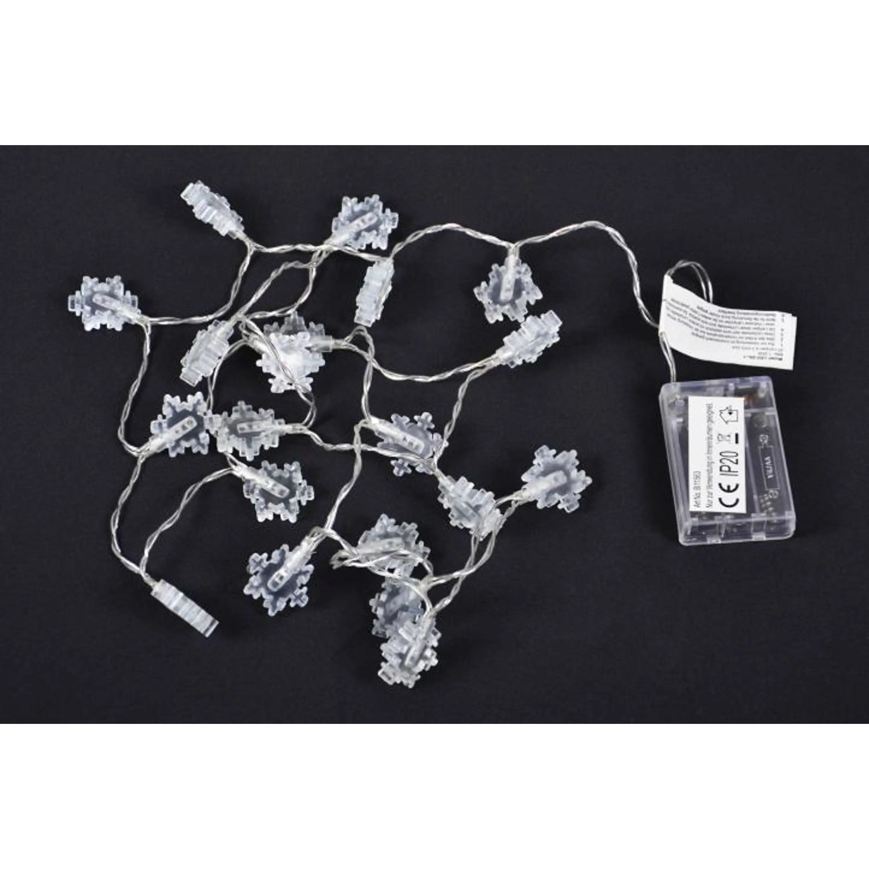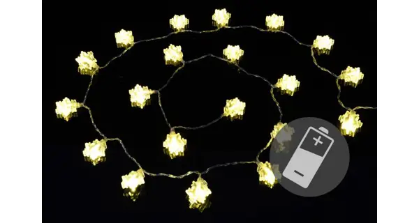 Toto prekrásne dekoratívne osvetlenie vnesie do Vášho domova kúzelnú zimnú atmosféru. Vďaka LED technológii nemusíte meniť žiarovky, sú odolné proti otrasom a nevyžarujú žiadne teplo. Svetelná reťaz s vločkami je dlhá cca 1,5 m a je nabíjaná pomocou batérií.