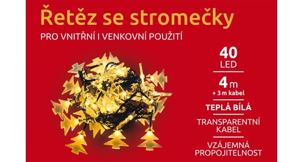 Svetelná reťaz so stromčekmi rozžiari Váš interiér a exteriér. Vhodná je na okno, stromček a balkón. Vďaka LED diódam ušetríte až 90 % energie oproti klasickým žiarovkám. Priemerná životnosť LED diódy je cca 2000 hodín svietenia.