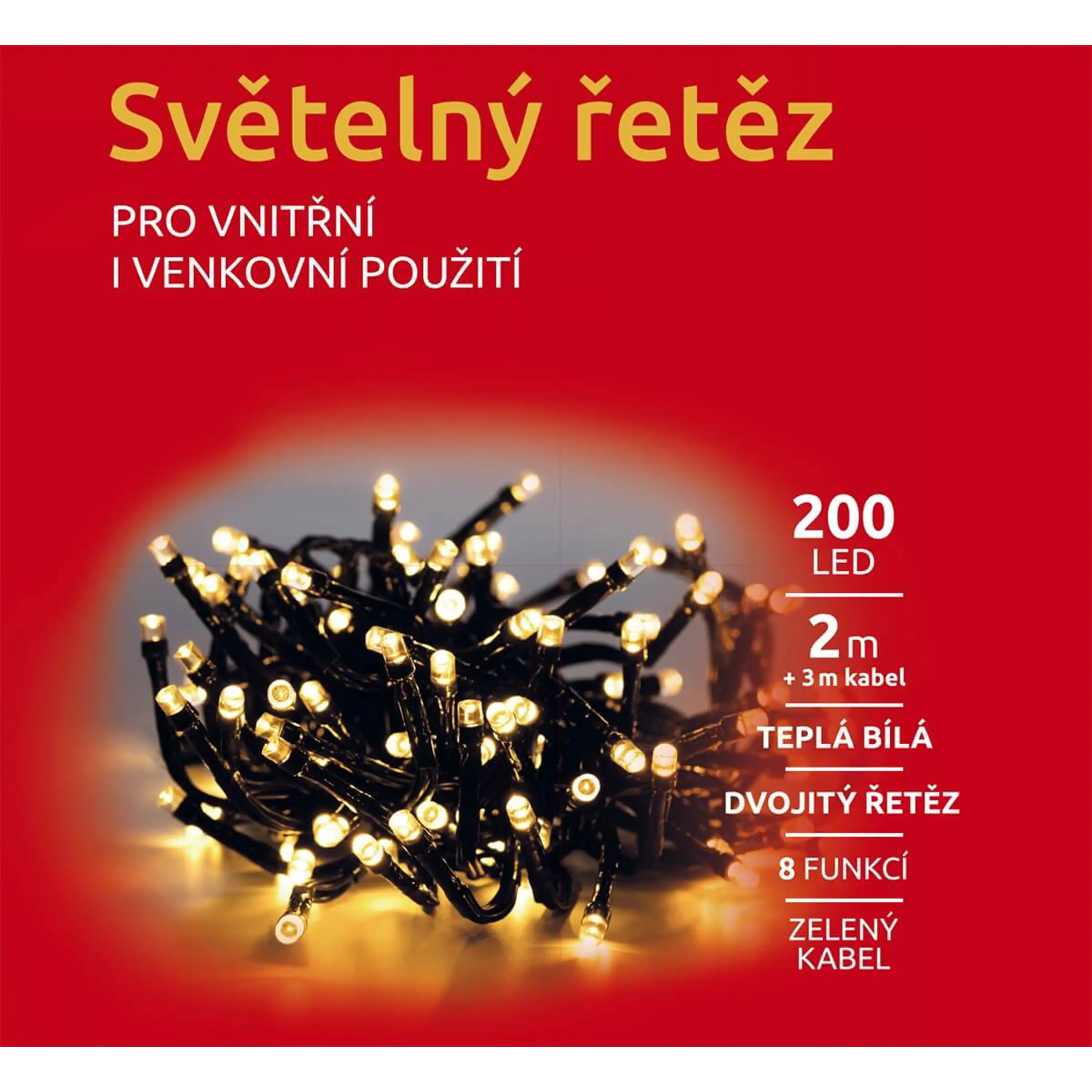 Dvojitá svetelná reťaz rozžiari Váš interiér aj exteriér. Vhodná na okná, stromčeky, balkón aj dom. S LED diódami ušetríte až 90% energie v porovnaní s bežnými žiarovkami. Priemerná životnosť LED je približne 2000 hodín svietenia. Teplé biele osvetlenie, so svetelnými efektami - 8 módov.