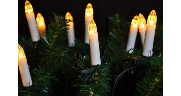 Sviečky obsahujú 20 LED diód, ktoré vyžarujú teplé biele svetlo. Na stromček ich upevníte pomocou svoriek a svetlo je vyžarované na vzdialenosť približne 40 cm. Sviečky sú vhodné len pre vnútorné použitie !