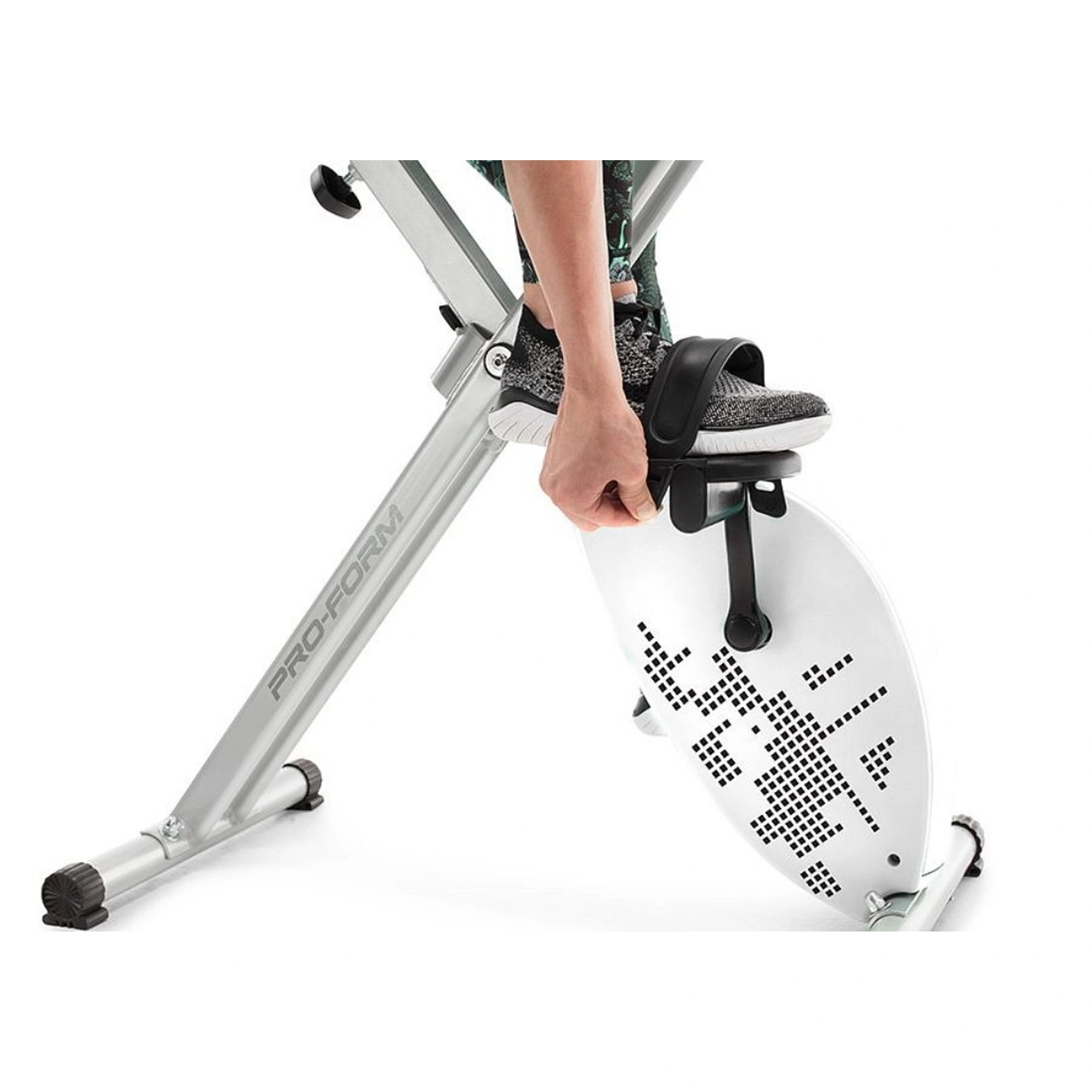 Rotoped PRO-FORM PF X-Bike vás určite pohltí nielen svojím moderným dizajnom a príjemnou obstarávacou cenou, ale aj svojim abnormálne malým nárokom na priestor. Milovníci športu, ktorí v domácej telocvični bojujú s každým centimetrom navyše, očarí jeho blesková možnosť zloženia. Ak patríte k populácii veľkých, malých, tenkých či zavalitých je tento stroj s maximálnou nosnosťou 115 kg a ľahko nastaviteľným sedlom určený práve pre vás. Magnetický brzdný systém s plynulou elektronickou reguláciou a perfektne vyvážený zotrvačníkový systém s hmotnosťou 3 kg zaisťuje plynulý a tichý chod stoja.