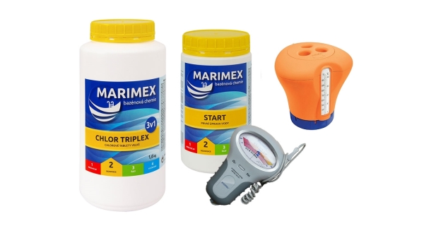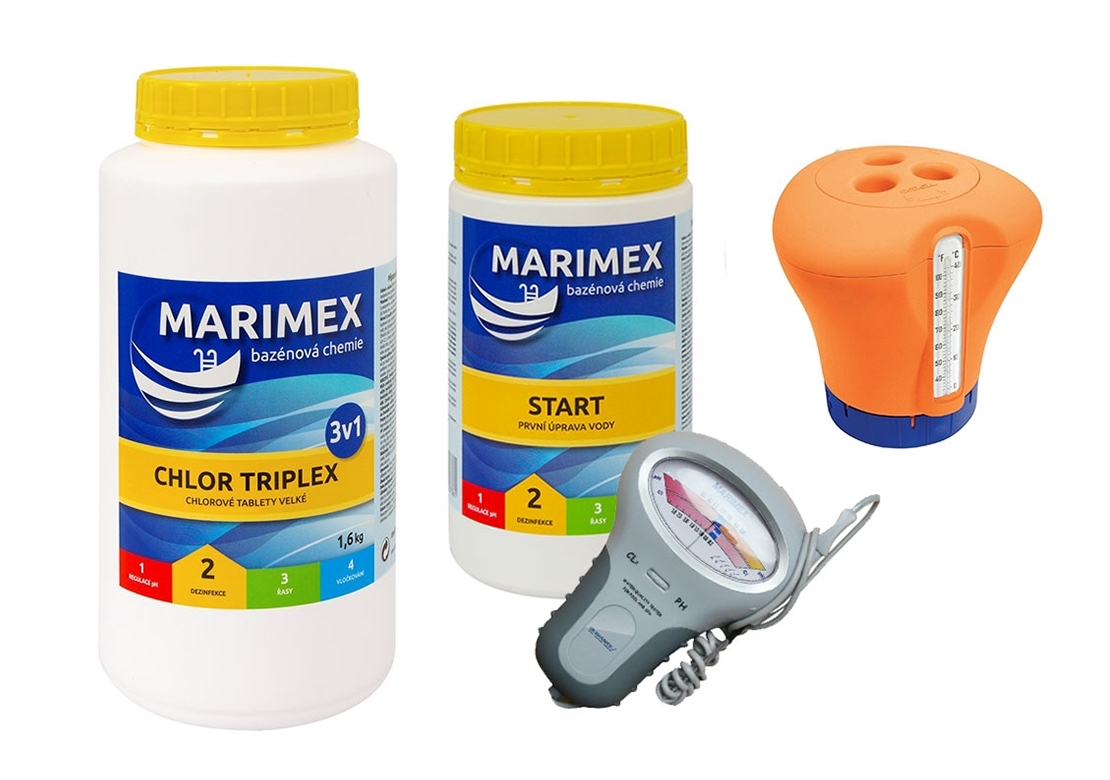 Cenovo výhodná sada bazénovej chémie a príslušenstva na údržbu bazénovej vody. Pomocou Marimex Start môžete zachlórovať bazén po prvom napustení, elektronický tester Vám bude sledovať pH a chlór vo vode, chlórové tablety Triplex môžete do bazéna umiestniť vo veľkom plaváku, ktorý súčastne meria teplotu bazénovej vody.