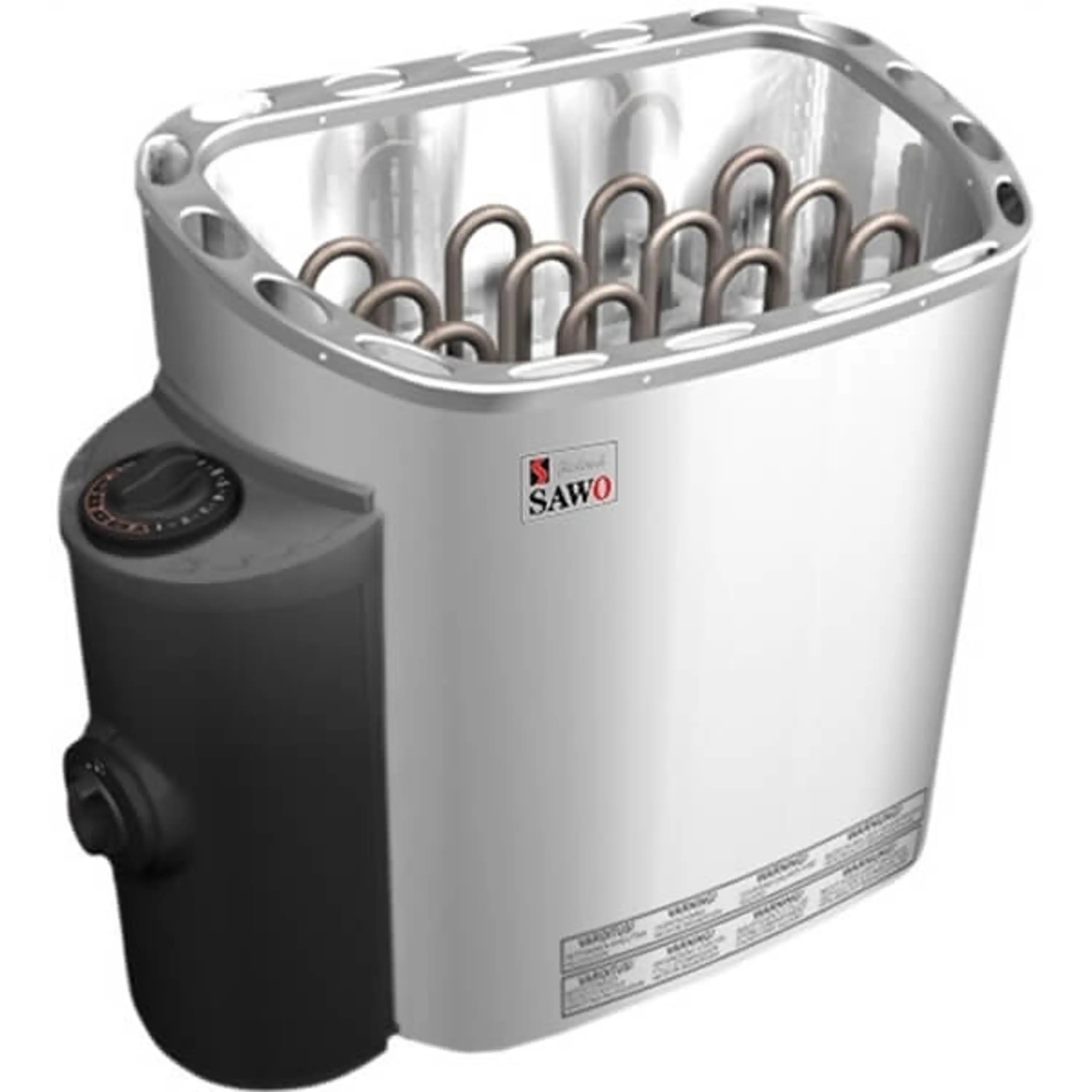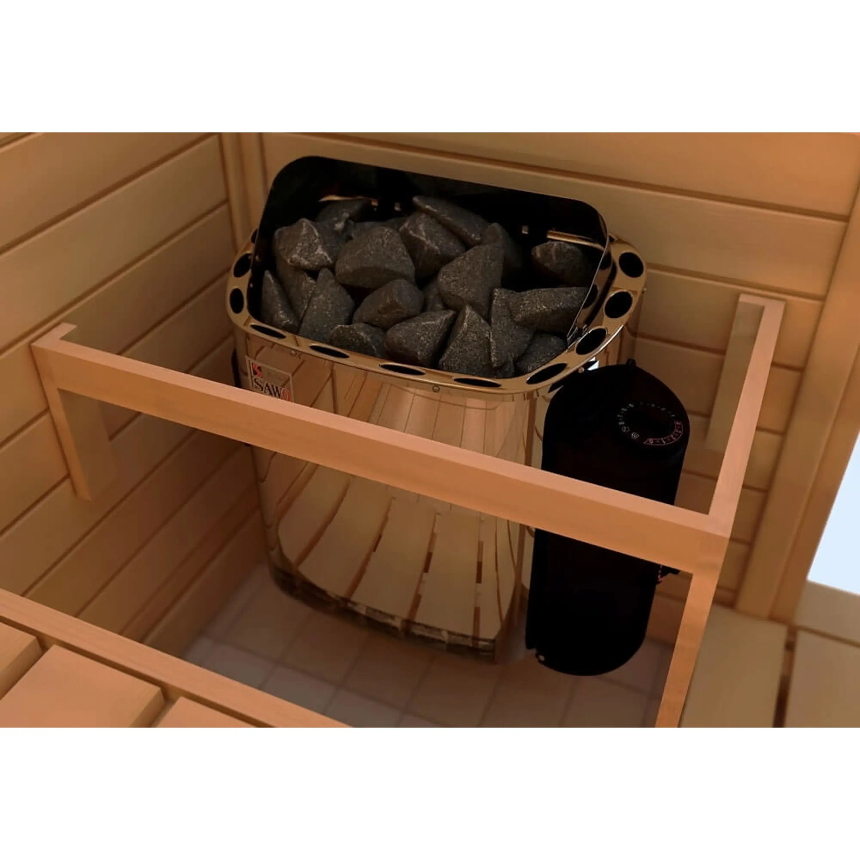 lávové kamene 18 - 22 kg. Táto saunová pec umožňuje nalievanie vody. Súčasťou balenia je prídavný tepelný kryt. Kryt chráni stenu za kachľami a odvádza teplý vzduch do spodnej časti saunovej miestnosti. Kvalitné spracovanie, testovaný výrobok. Saunová pec je vyrobená z nehrdzavejúcej ocele. Kachle sa dodávajú bez prívodného kábla a bez lávových kameňov.