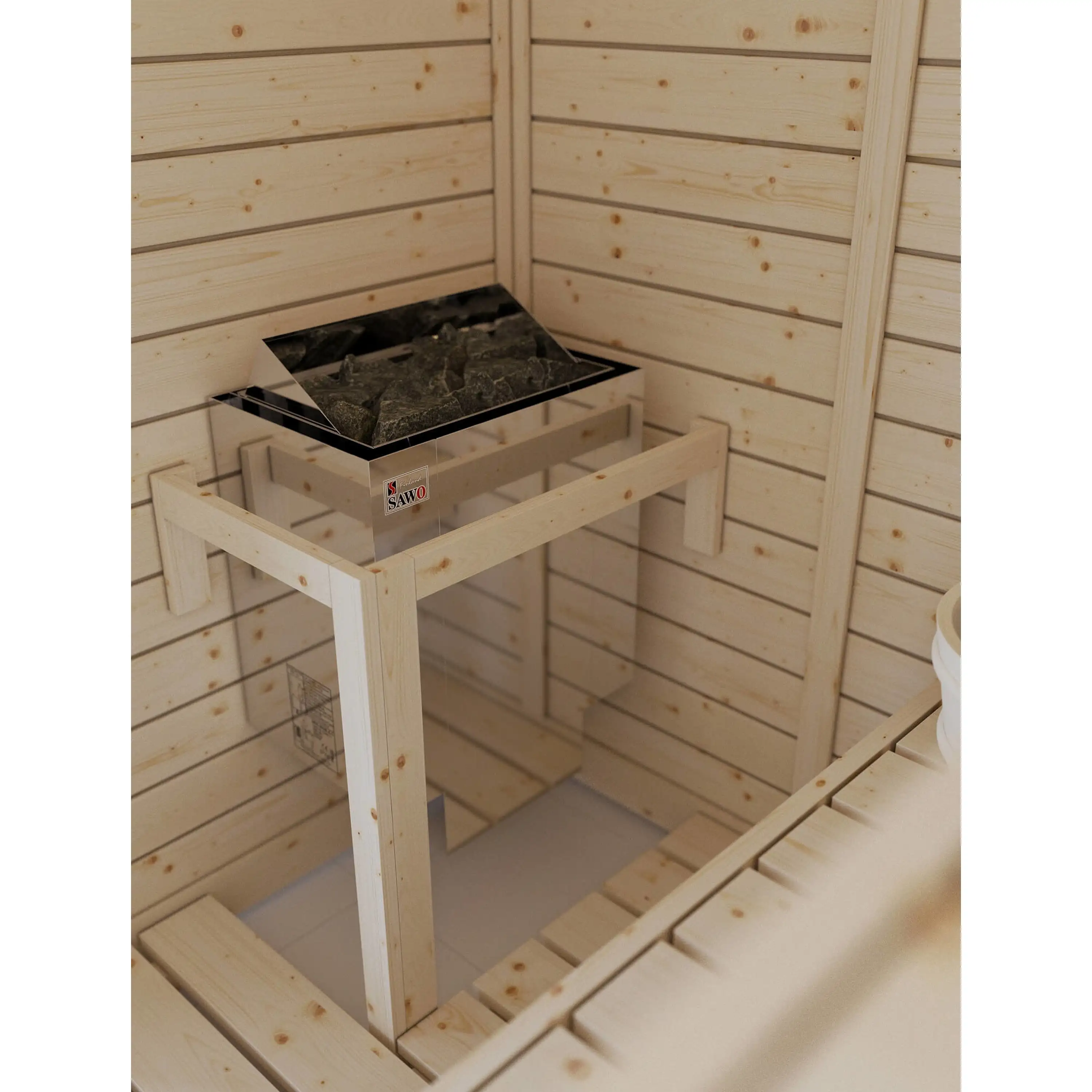 3. Priestor pre lávové kamene 18 – 22 kg. Tieto saunové kachle umožňujú polievanie vodou. Súčasťou dodávky je prídavný tepelný kryt. Kryt chráni stenu za pecou a vedie teplý vzduch aj do spodnej časti saunovej miestnosti. Veľmi kvalitné spracovanie, testovaný výrobok. Saunové kachle sú vyrobené z nehrdzavejúcej ocele. Kachle sú dodávané bez prívodného kábla a bez lávových kameňov. Určené na montáž na stenu.