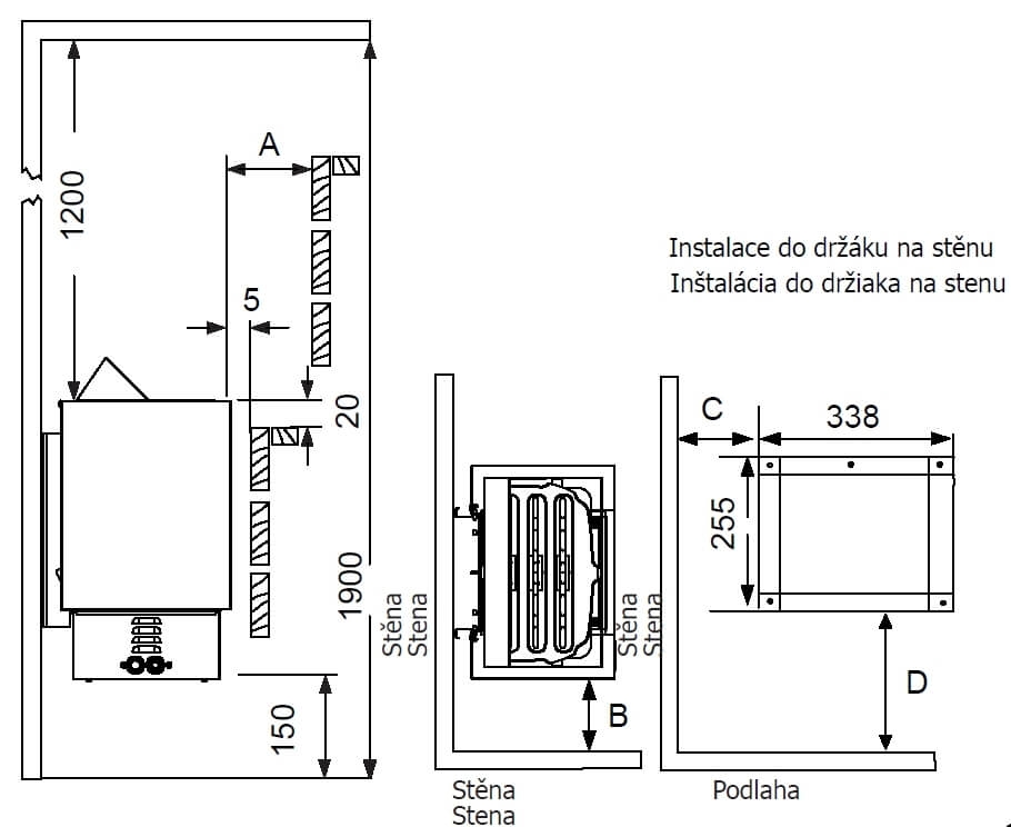 - Minimálna výška sauny: 190 cm