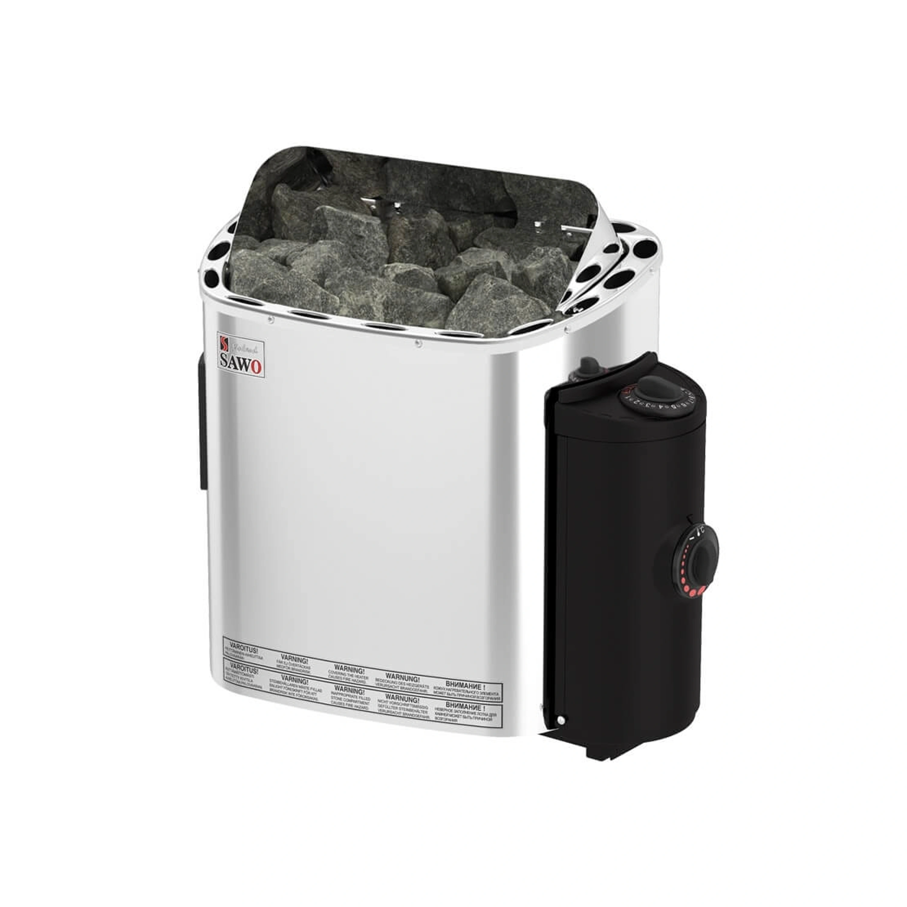 3. Vstavané ovládanie sa dá umiestniť na ich ľavú aj pravú stranu, Priestor pre lávové kamene 18 – 22 kg. Tieto saunové kachle umožňujú polievanie vodou. Súčasťou dodávky je prídavný tepelný kryt. Kryt chráni stenu za pecou a vedie teplý vzduch aj do spodnej časti saunovej miestnosti. Veľmi kvalitné spracovanie, testovaný výrobok. Saunové kachle sú vyrobené z nehrdzavejúcej ocele. Kachle sú dodávané bez prívodného kábla a bez lávových kameňov. Určené na montáž na stenu.
