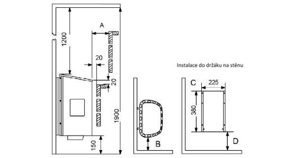 Bezpečnostná vzdialenosť B k stene: 100 mm