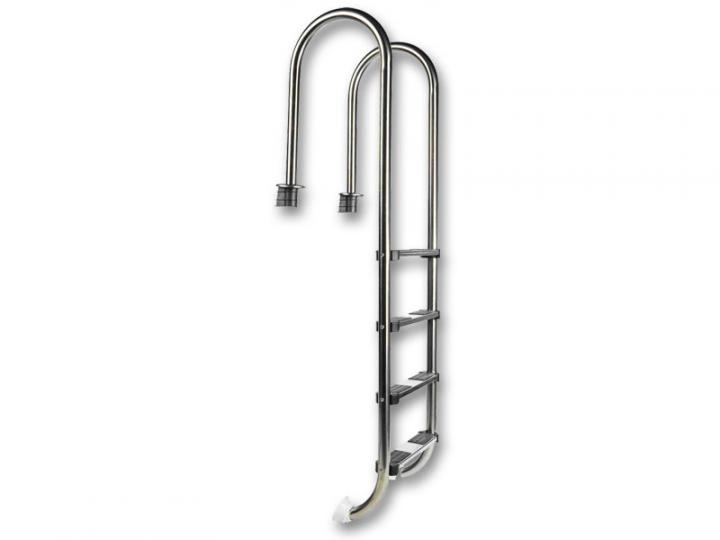 Bazénové schodíky Slim 4 - stupňové sú určené pre všetky typy zapustených bazénov , ktorých hĺbka je minimálne 130 cm ( 4 - stupňové schodíky nie je možné použiť pre bazény Azuro ) . Sú vyrobené z nerezovej ocele a ich stupňe sú vybavené protišmykovými nášľapmi z mäkčeného plastu . Schodíky majú plastové koncovky , ktoré chránia stenu bazéna pred poškodením . Súčasťou schodíkov je tzv . Kotvenie , tj . Púzdra pre montáž do dlažby ( betónu ) .