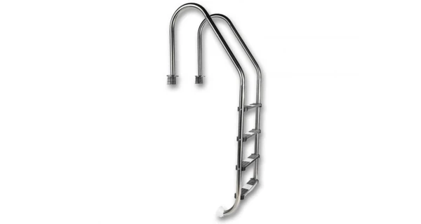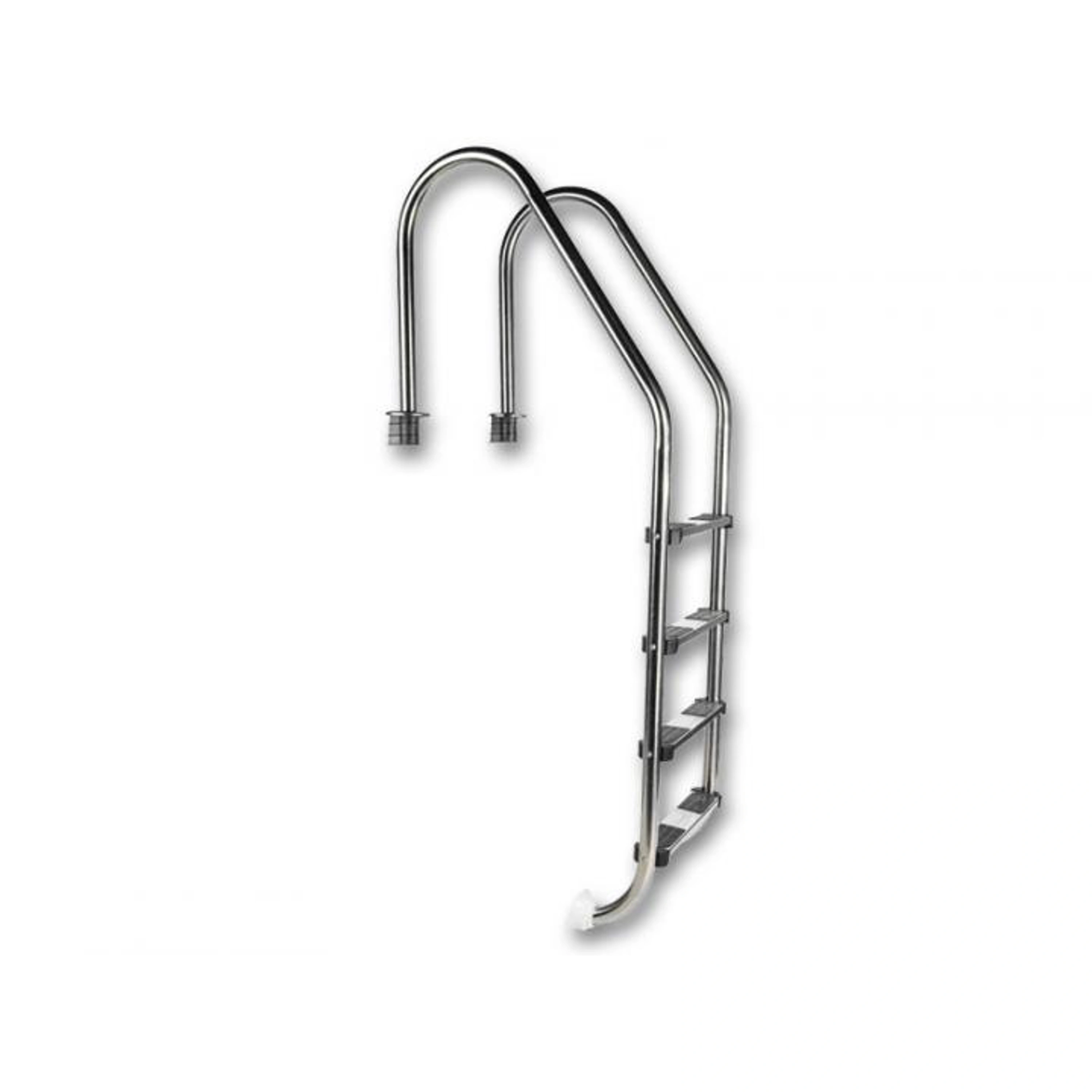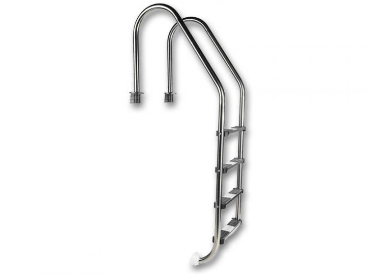 Bazénové schodíky Standard 4 - stupňové sú určené pre všetky typy zapustených bazénov, ktorých hĺbka je minimálne 90 cm . Sú vyrobené z nerezovej ocele a ich stupne sú vybavené protišmykovými nášľapmi z mäkčeného plastu . Schodíky majú plastové koncovky, ktoré chránia stenu bazéna pred poškodením . Súčasťou schodíkov je tzv . kotvenie , tj . púzdra pre montáž do dlažby ( betónu ) .
