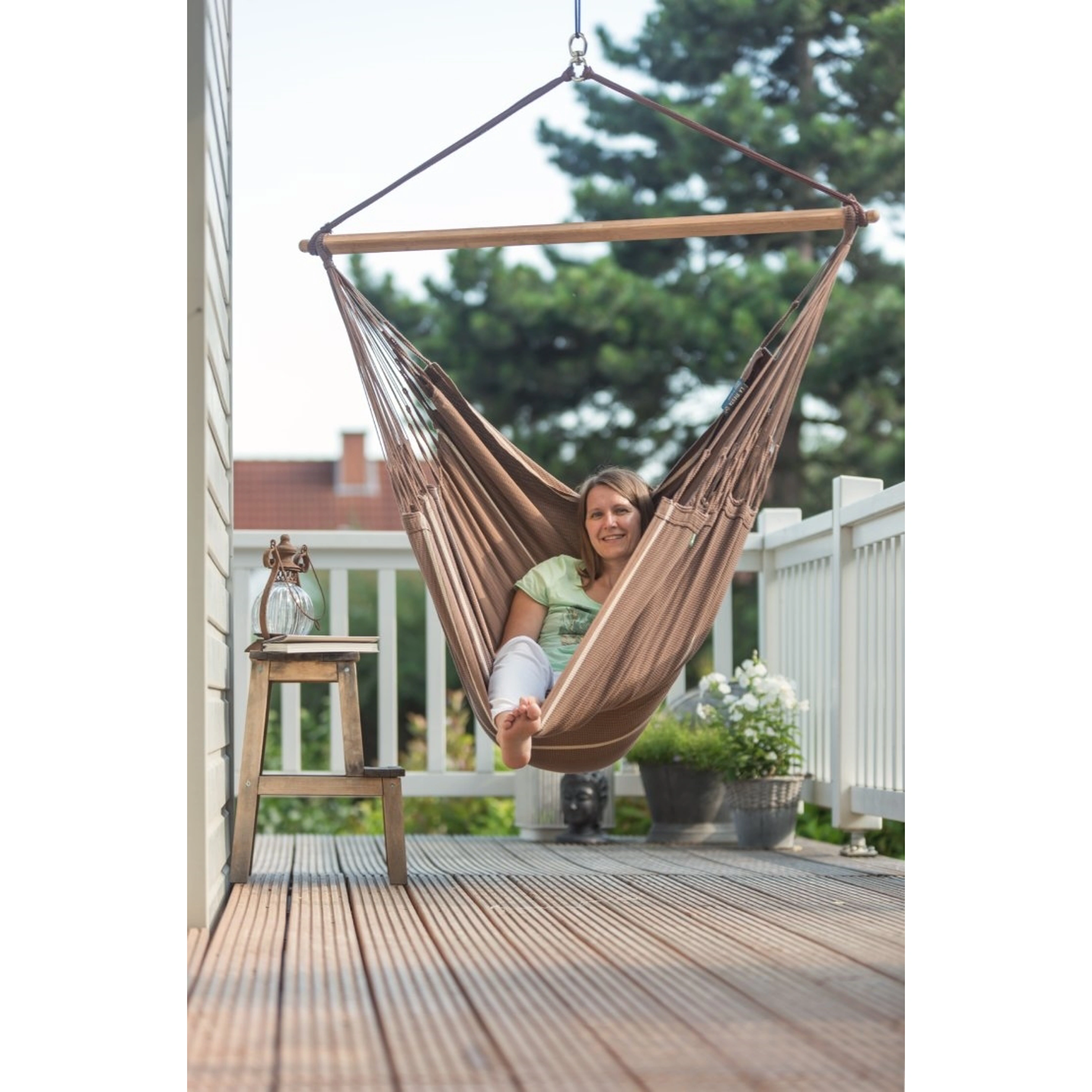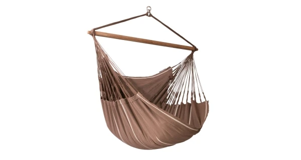 V priestrannej hojdacej sedačke La Siesta Habana Kingsize, cosy latte z hebkej organickej bavlny vydržíte relaxovať celé hodiny. K vášmu pocitu beztiaže prispeje aj to, že bola vyrobená spôsobom prívetivým k ľuďom aj prírode.