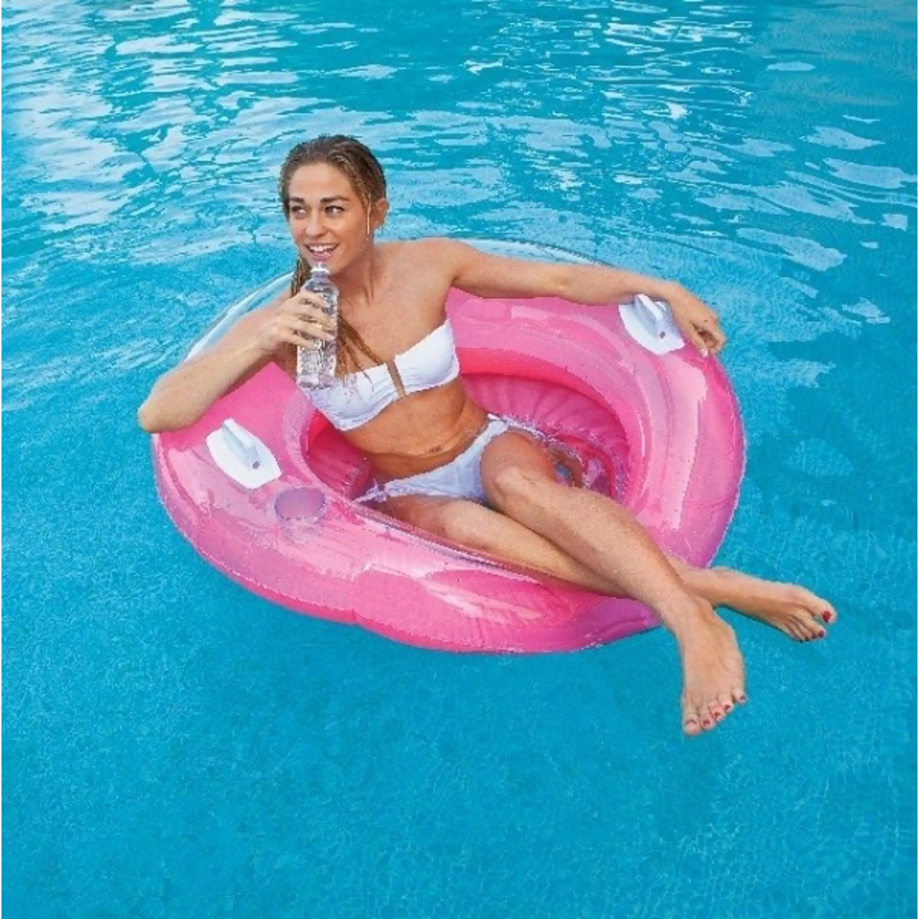 Nafukovacie sedátko do vody s pevnými držadlami.