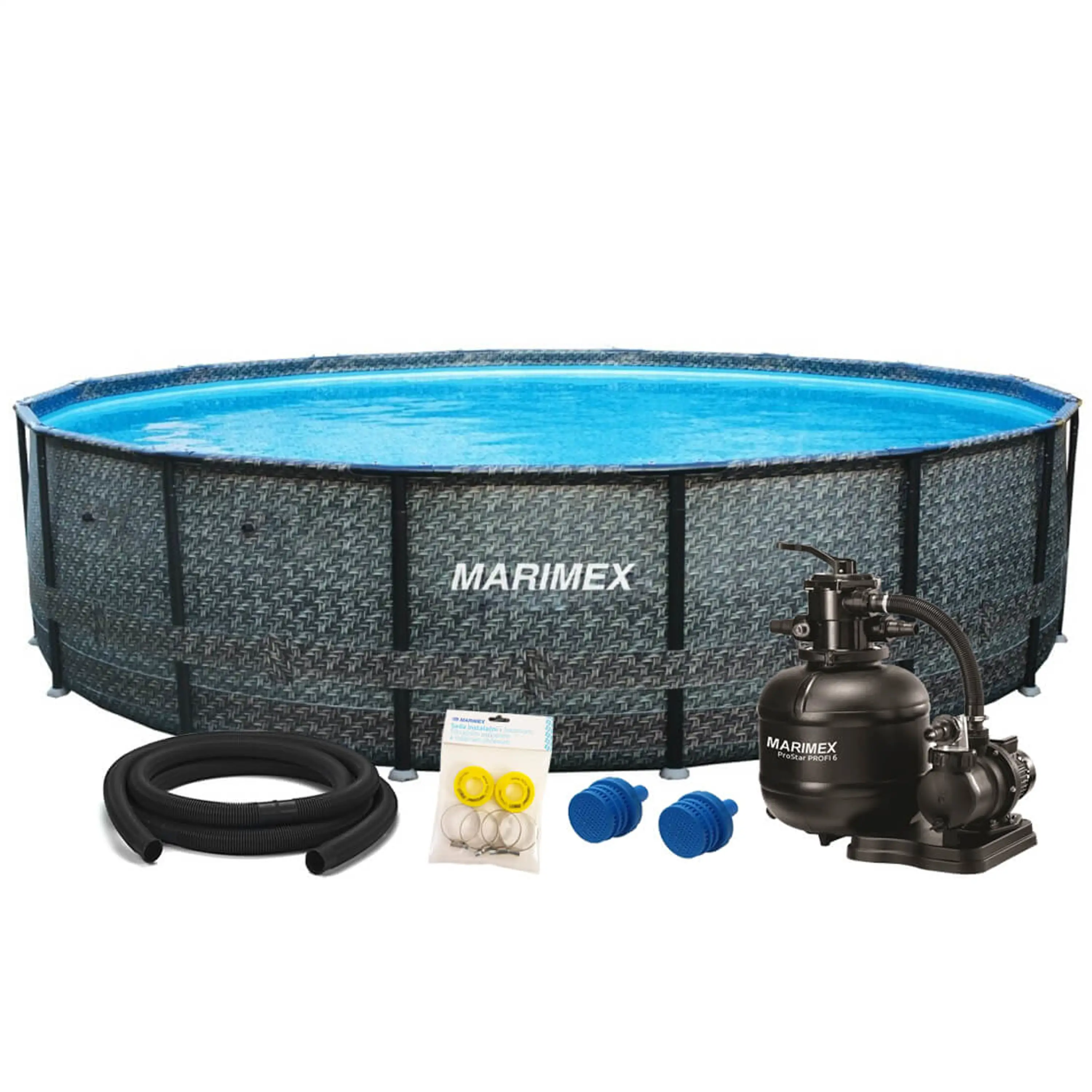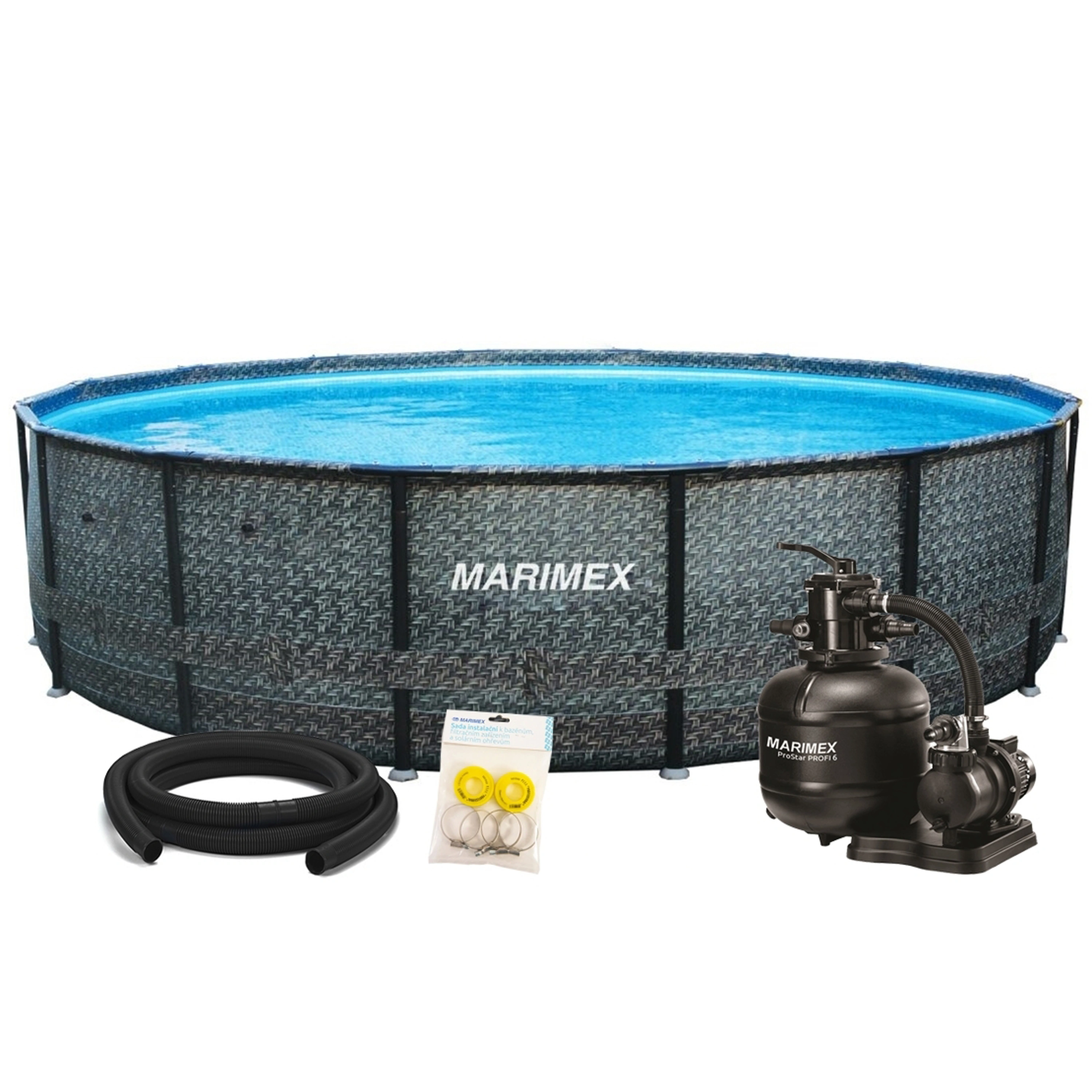 Bazénový set obsahuje všetky potrebné diely na prepojenie bazéna a filtrácie (napr. hadice a pásky na upevnenie hadíc).
