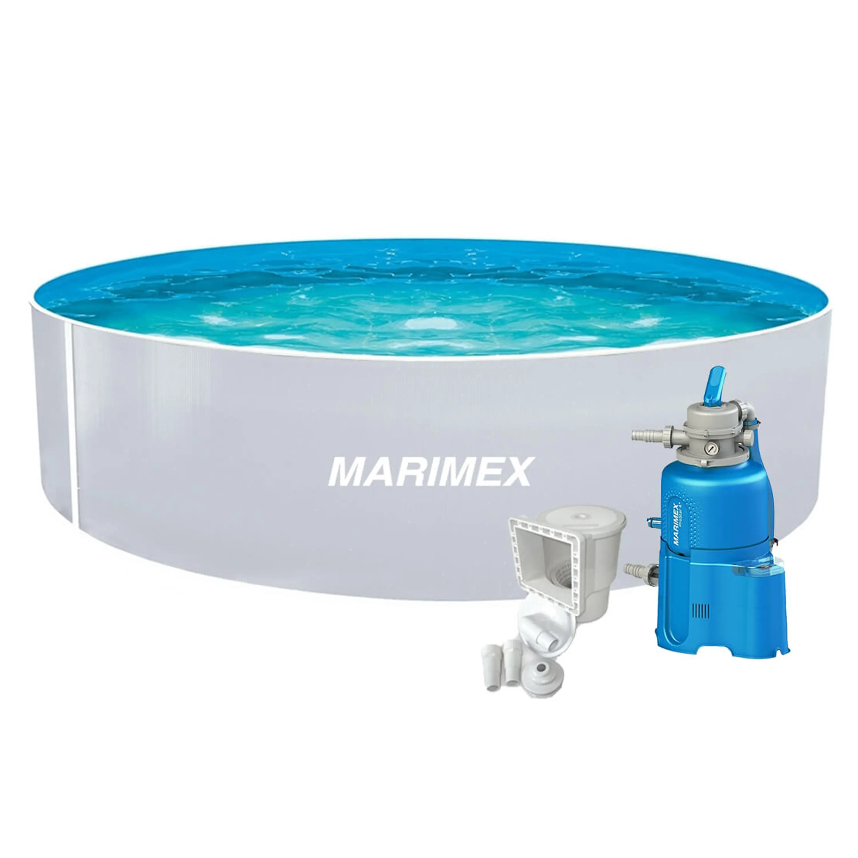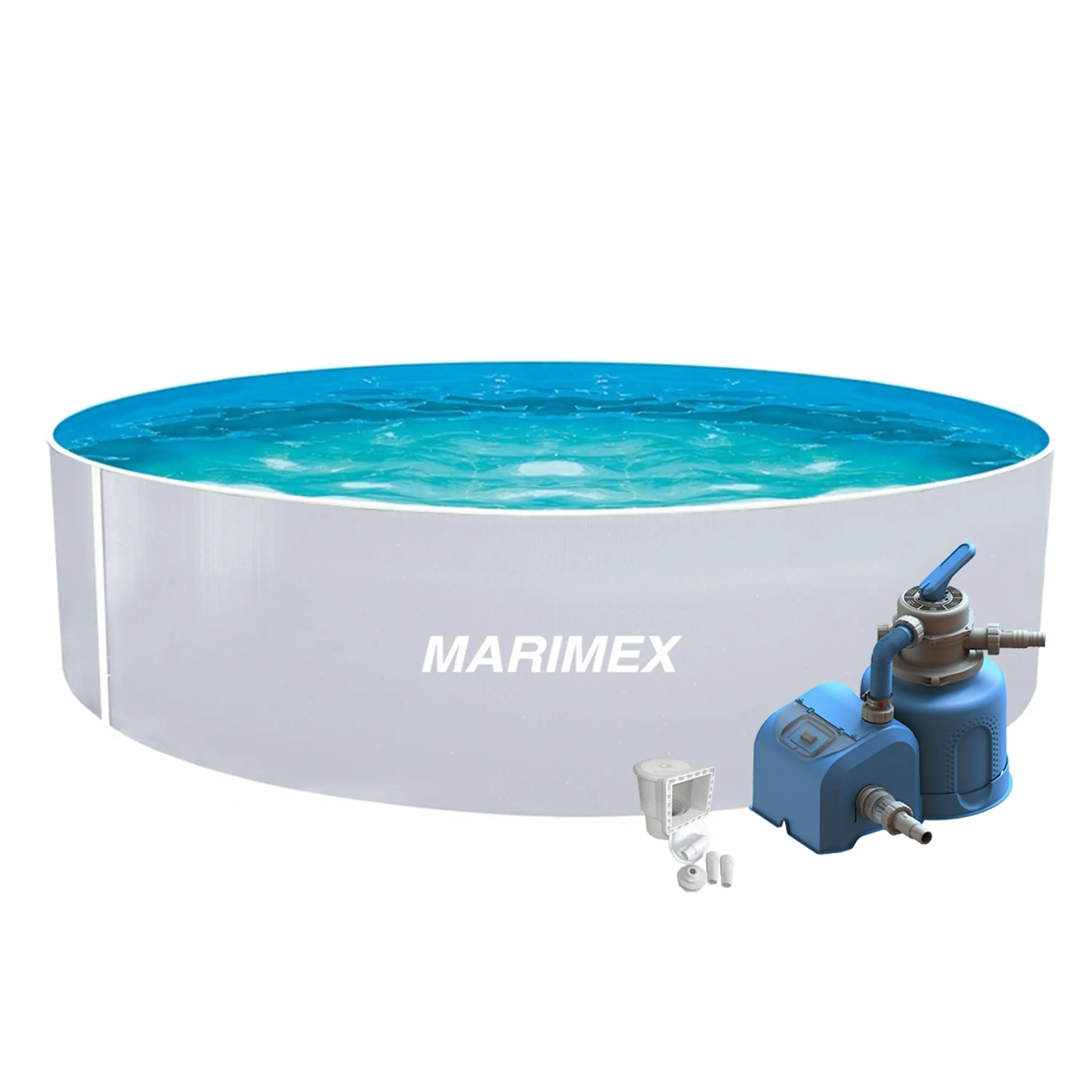 Bazénový set obsahuje všetky potrebné diely na prepojenie bazéna a filtrácie (napr. hadice, pásky na upevnenie hadíc, apod.).