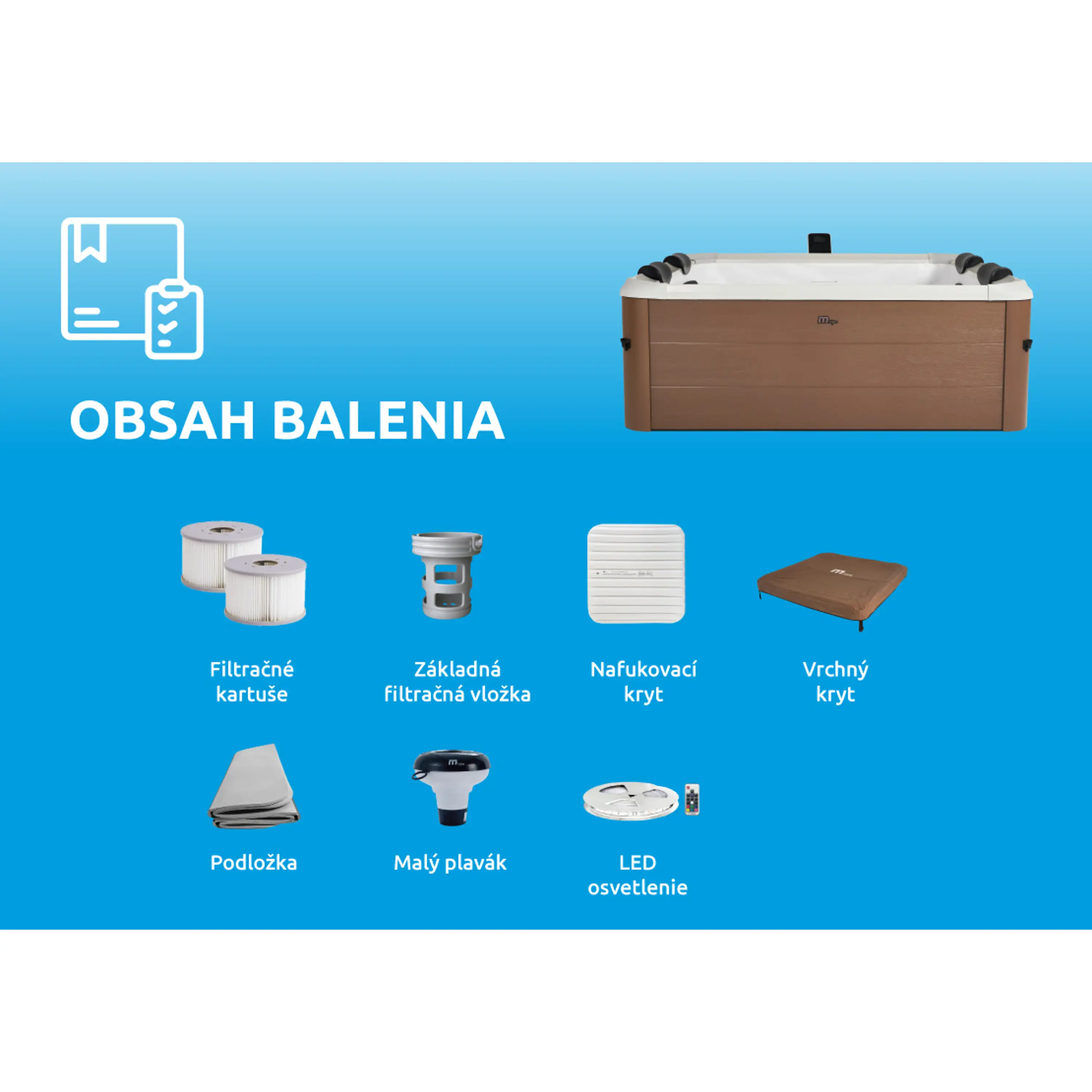 - Trysky: 140 vzduchových + 8 nastaviteľných hydromasážnych trysiek