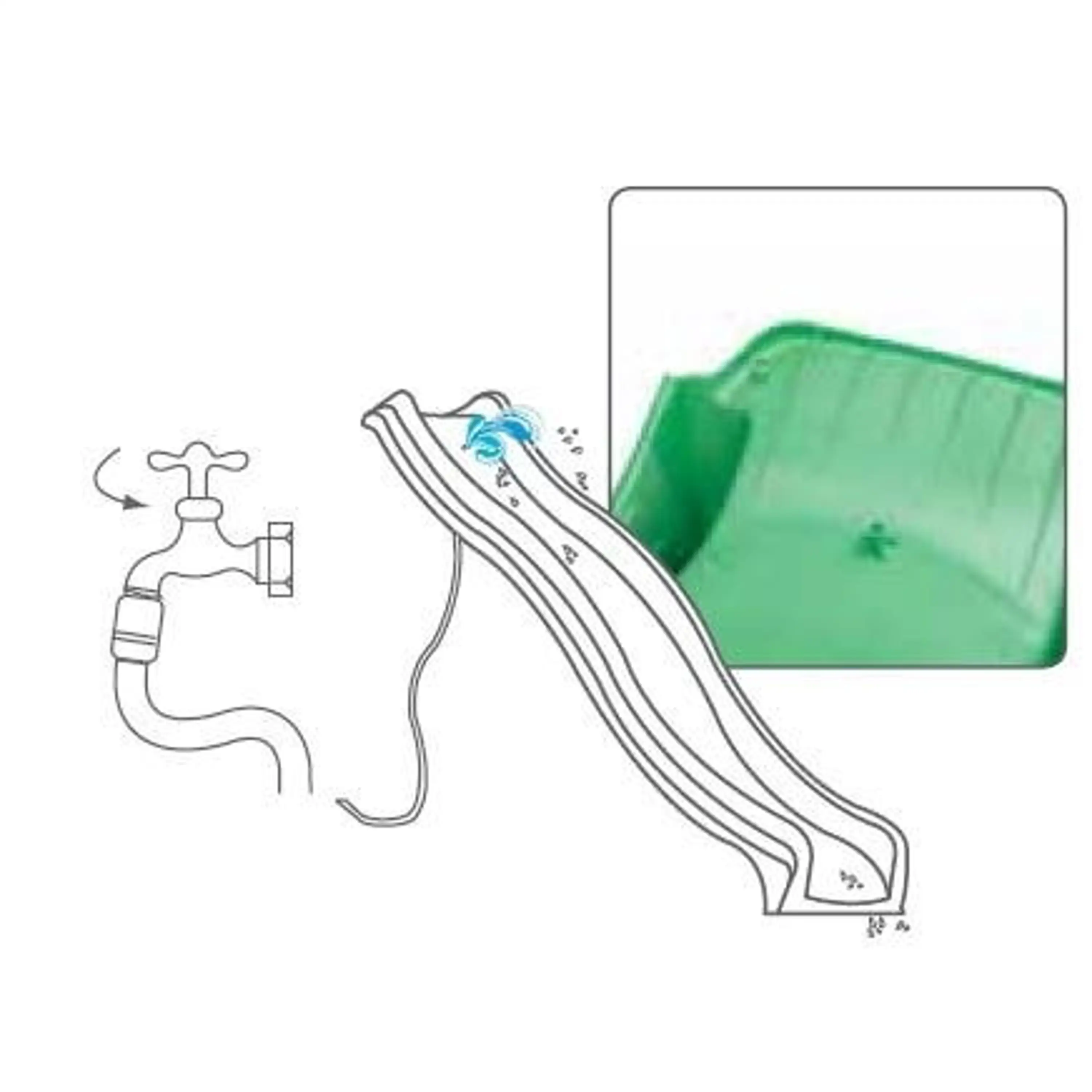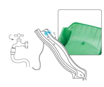 Kvalitná detská šmykľavka s prípojkou na vodu je vyrobená z pevného plastu. Prídavnú šmykľavku je možné umiestniť k väčšine detských ihrísk s nástupnou výškou 150 cm.
