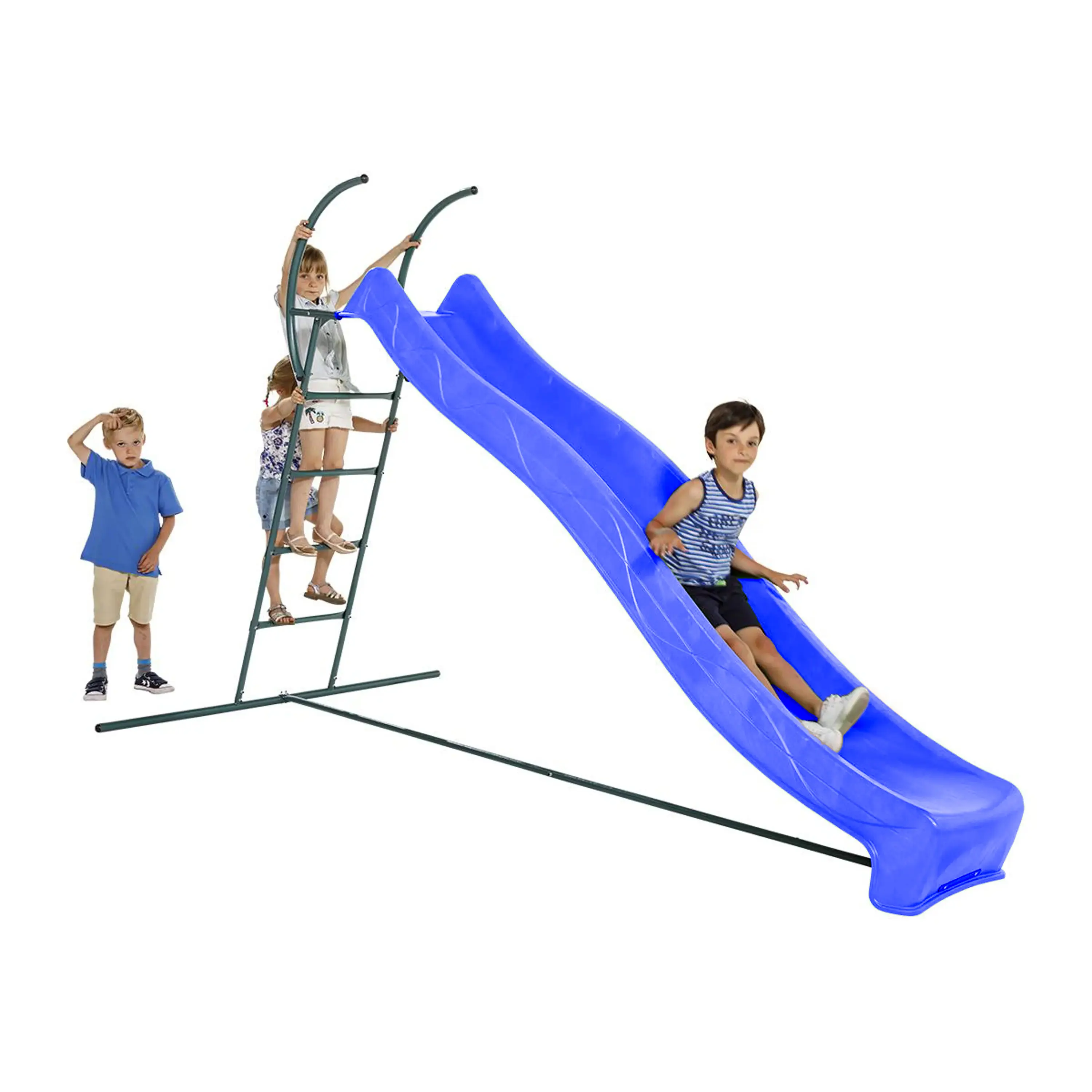 Kvalitná detská modrá šmykľavka s prípojkou na vodu je vyrobená z pevného a odolného plastu, ktorý dlho drží farbu, znesie UV žiarenie aj poškriabaniu a je navrhnutý tak, aby klzná plocha bola príjemne hladká. Vďaka tomu poskytuje bezpečný a plynulý sklz pre deti približne od 3 do 10 rokov. Nosnosť je zhruba 50 kg, čo je ideálne pre mladšie deti aj ich kamarátov.