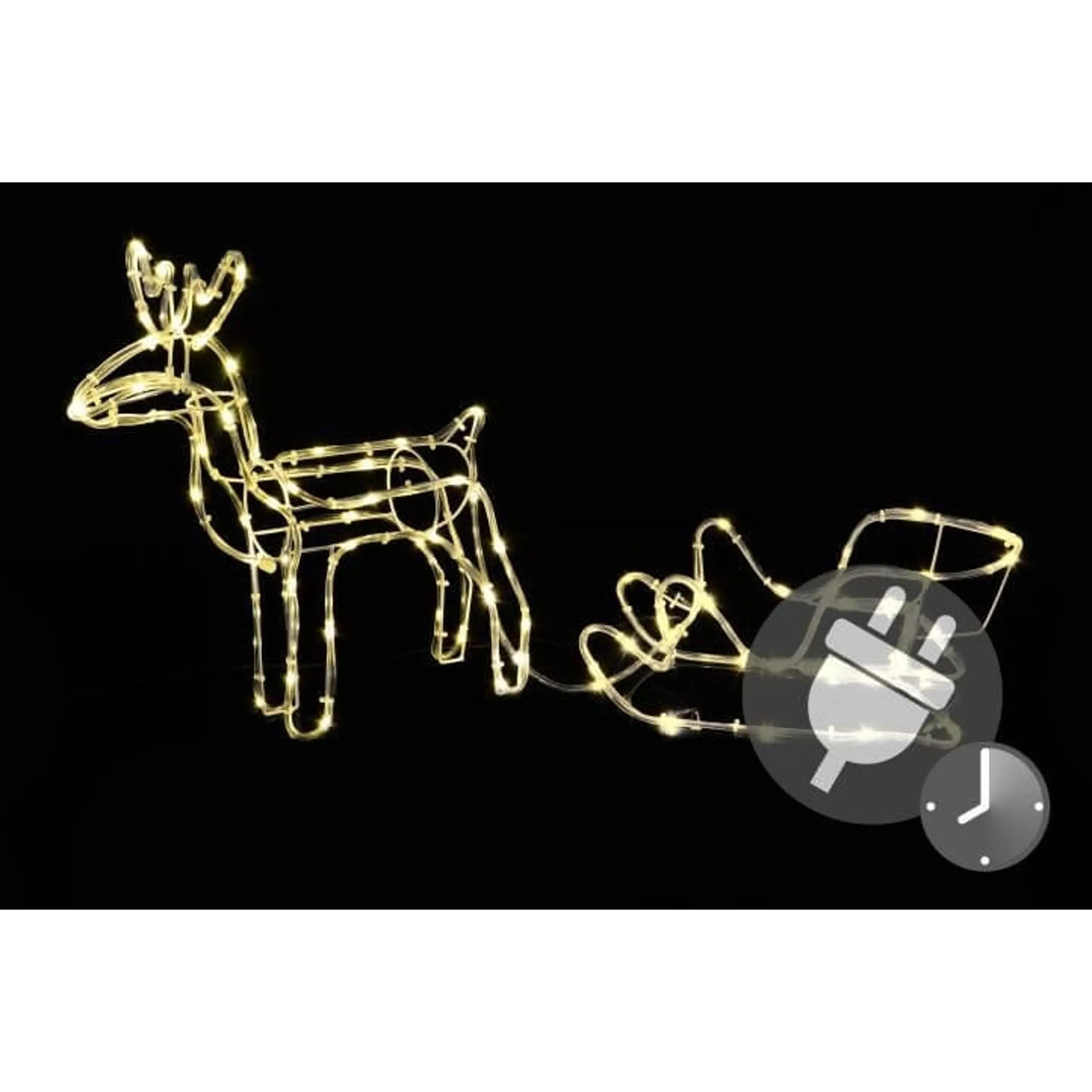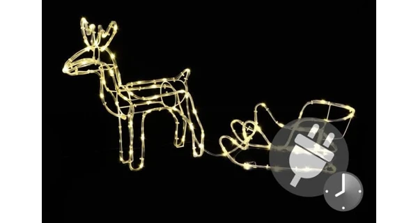 Originálna dekorácia - svietiaci vianočný sob so saňami. Rozsvietený sob Vám krásne rozžiari interiér, môžete ho ale umiestniť aj na terasu alebo na záhradu. Sob aj sane sú potiahnuté svetelným káblom s teplými bielymi LED diódami.