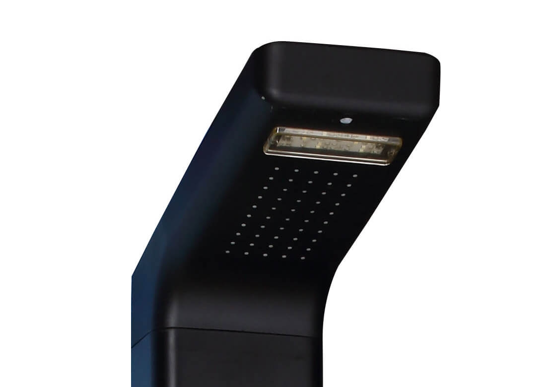 Integrovanou súčasťou sprchy je LED svetlo napájané akumulátorom s kapacitou 2000 mAh a dobíjané pomocou malého fotovoltaického panela. LED svetlo je spínané pomocou PIR senzora. Citlivosť snímača 2 m. Doba nabitia je závislá na zostatkovej kapacity akumulátora a na dobe svitu a umiestnenia solárnej sprchy.