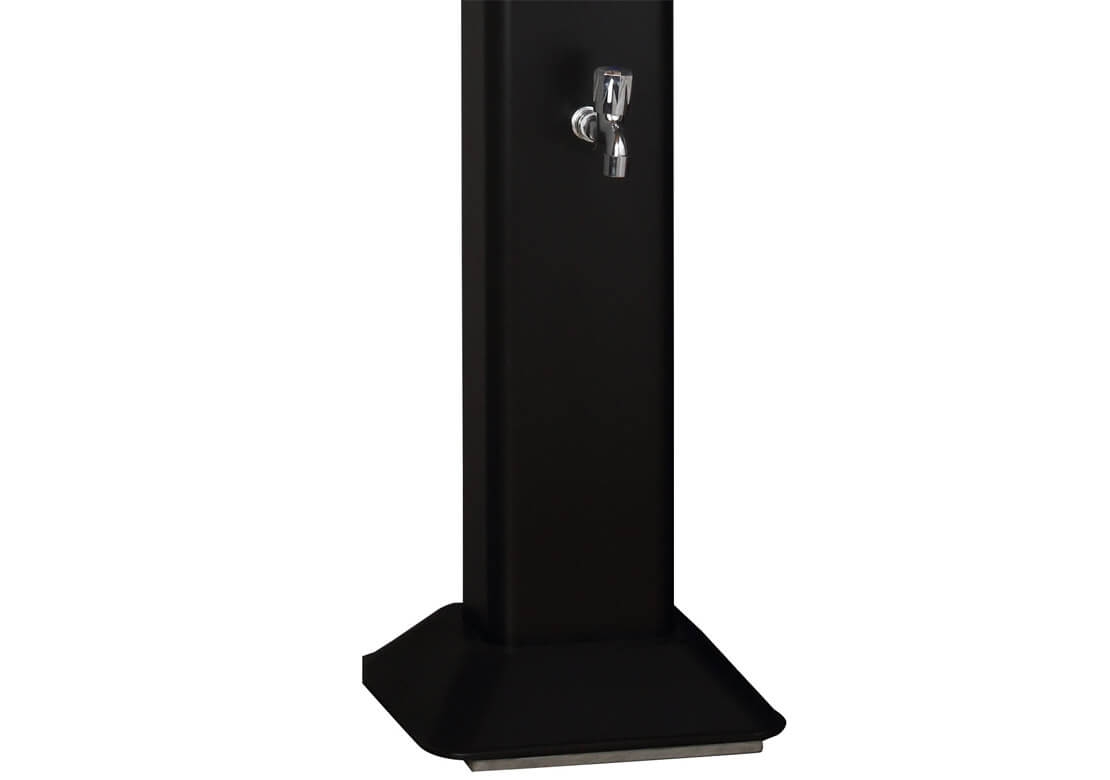 Záhradná sprcha UNO s nebývalým objemom 35 l pre vonkajšie použitie. Zaistí ohrev vody privádzanej zo záhradnej hadice a tým perfektný pocit pohodlia pri sprchovaní teplou alebo vlažnou vodou. Ohrev vody zabezpečuje slnečné žiarenie a telo sprchy, ktoré funguje ako solárny kolektor. Pre sprchovanie musí byť záhradná sprcha stále napojená na vodovod. Ak nie je napojená, nemožno sa sprchovať. Sprcha je navyše vybavená samostatným kohútikom vo výške kolien pre oplach nôh. Do tohto kohútika ide voda priamo z hadice, nahriata voda z neho netečie. Sprcha sa kotví pomocou 4 skrutiek (nie sú súčasťou balenia) pevne k zemi, čím je zaistená jej perfektná stabilita.