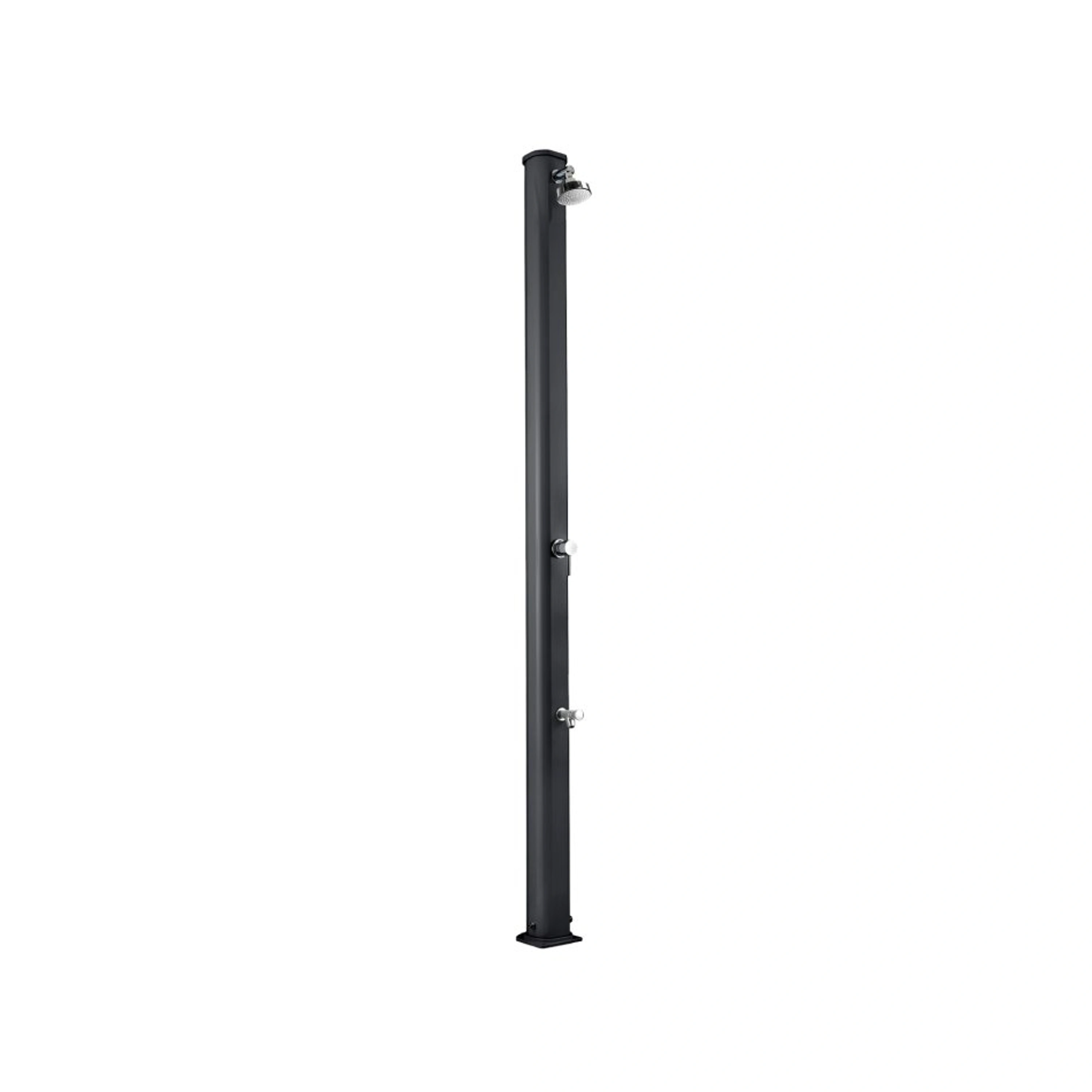 Záhradná sprcha UNO s objemom 22 l zaistí ekologický ohrev vody a tým perfektný pocit pohodlia pri sprchovaní teplou alebo vlažnou vodou. Sprcha má ľahkú konštrukciu. Ďalším benefitom je nastavenie teploty vody pákovou batériou a kohútik na oplach nôh. Záhradnú sprchu na Vašej záhrade zmontujete veľmi rýchlo a ľahko. Materiál: zliatina hliníka .