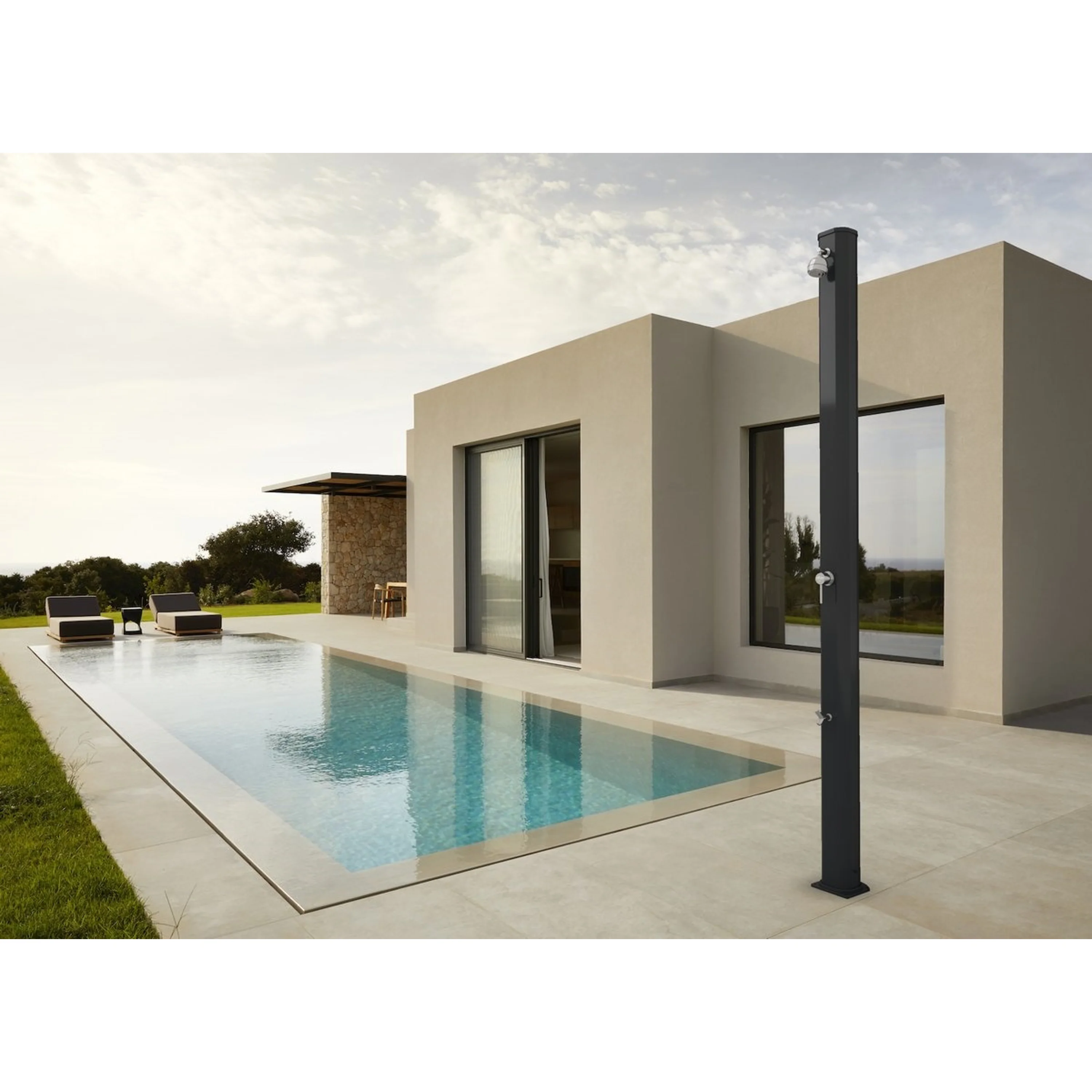 Solárne sprchy sa dajú využívať samostatne, ale môžu tvoriť aj doplnok k bazénom. Pomáhajú tak pred zbytočným znečistením bazénovej vody napríklad od trávy či hliny.