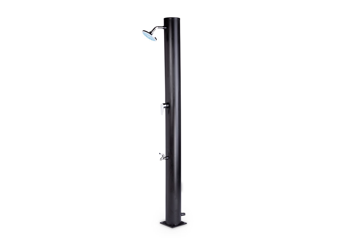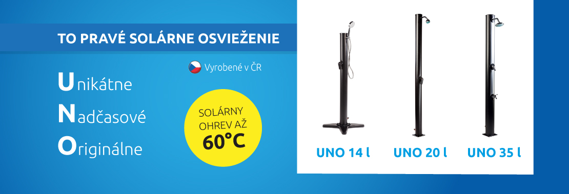 Záhradná sprcha UNO s nebývalým objemom 35 l pre vonkajšie použitie. Zaistí ohrev vody privádzanej zo záhradnej hadice a tým perfektný pocit pohodlia pri sprchovaní teplou alebo vlažnou vodou. Ohrev vody zaisťuje slnečné žiarenie a telo sprchy, ktoré funguje ako solárny kolektor. Na sprchovanie musí byť záhradná sprcha stále napojená na vodovodný rad. Ak nie je napojená, nie je možné sa sprchovať. Sprcha je navyše vybavená samostatným kohútikom vo výške kolien pre oplach nôh. Do tohto kohútika ide voda priamo z hadice, nahriata voda z neho netečie. Horná sprchovacia hlavica je vybavená kĺbom a je možné ju tak polohovať do rôznych smerov. Sprcha sa kotví pomocou 4 skrutiek (nie sú súčasťou balenia) pevne k zemi, čím je zaistená jej perfektná stabilita.