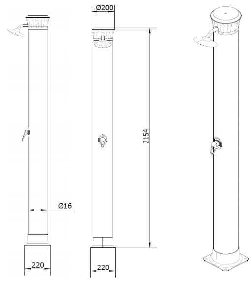 Záhradná sprcha UNO s neobvyklým objemom 40l pre vonkajšie použitie. Zaistí ohrev vody privádzanej zo záhradnej hadice a tým perfektný pocit pohodlia pri sprchovaní teplou alebo vlažnou vodou. Ohrev vody zaisťuje slnečné žiarenie a telo sprchy, ktoré funguje ako solárny kolektor. Pri sprchovaní musí byť záhradná sprcha stále napojená na vodovodné potrubie. Aj nie je napojená nemožno sa sprchovať. Sprcha sa kotví pomocou 4 skrutiek (nie sú súčasťou balenia) pevne k zemi, čím je zaistená jej perfektná stabilita.