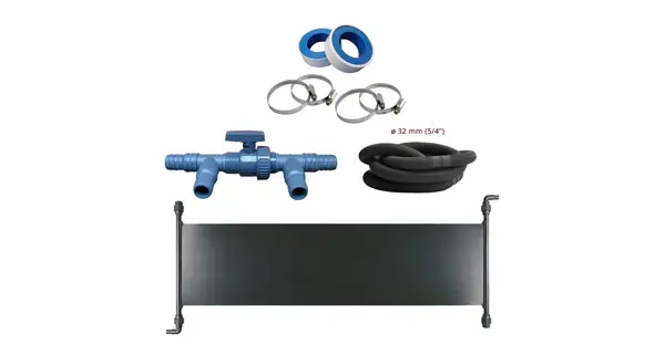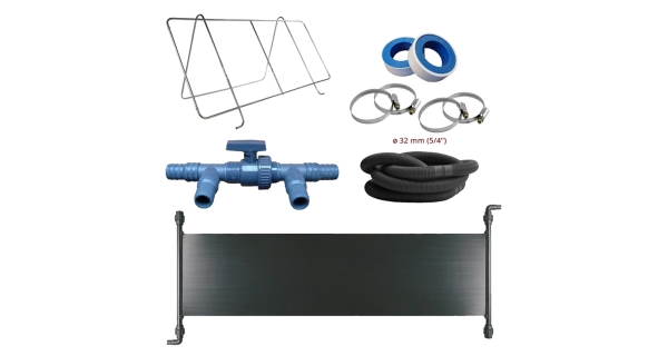Výhodná sada solárneho ohrevu Slim 180 a inštalačného príslušenstva , V sade máte všetko , čo budete pre inštaláciu potrebovať . Dostatočné množstvo hadíc dovolí umiestniť ohrev na miesto , kam bude slnko najviac svietiť a zaistí tak kvalitné ohrev . Vďaka regulačnému ventilu môžete vyradiť ohrev z okruhu , keď potrebujete len filtrovať vodu v bazéne . Pomocou stojanu umiestnite ohrev tak, aby bol čo najlepšie nasmerovaný na slnko .