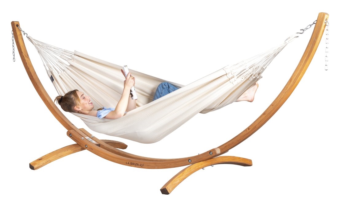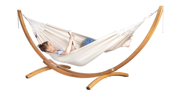Najjednoduchší spôsob, ako zavesiť hojdaciu sieť - odolný stojan Elipso, spájajúci elegantný dizajn s prírodnými materiálmi, môžete využiť doma aj vonku.