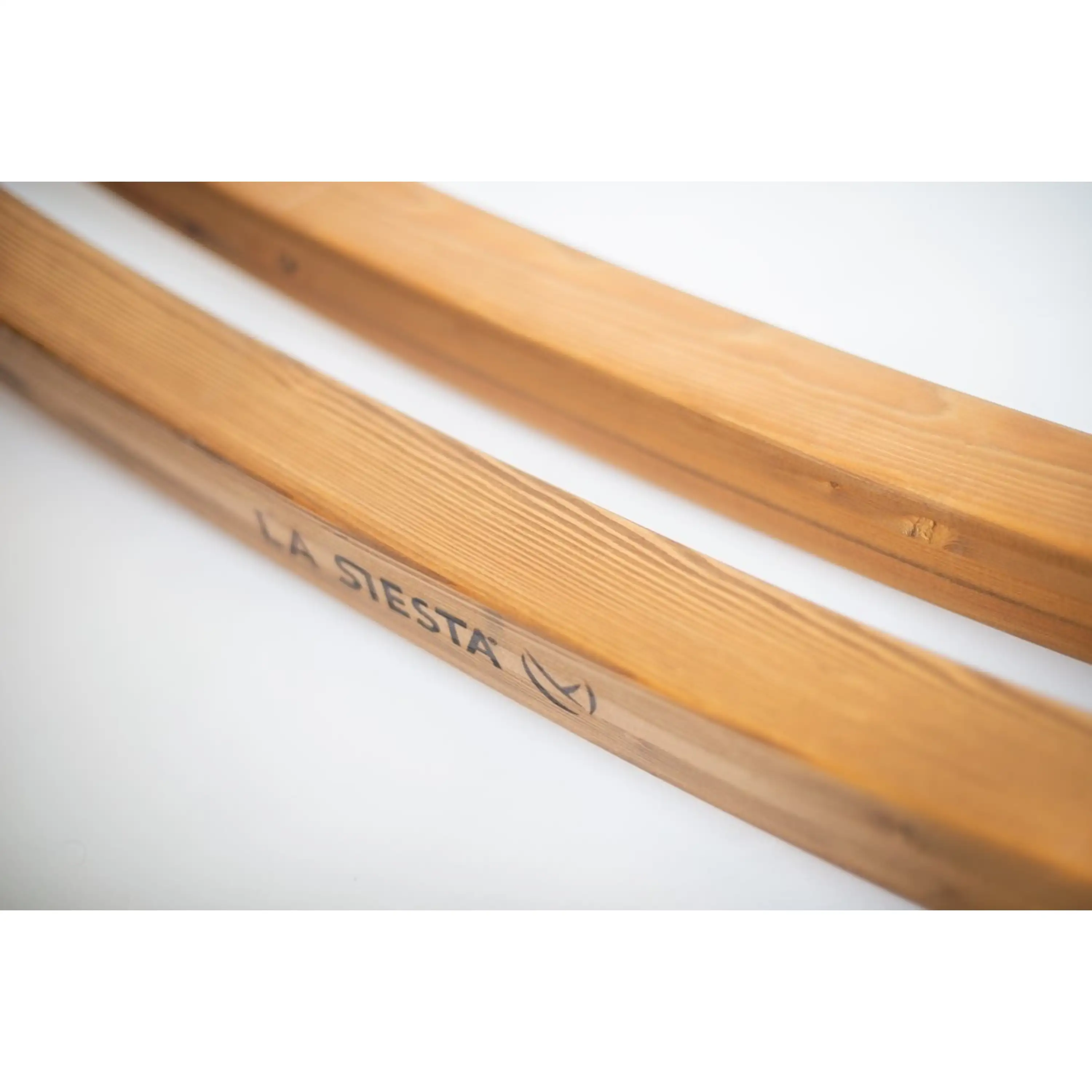 Drevený stojan Elipso je vyrobený zo sibírskeho smrekovca, ktorý sa vyznačuje krásnou kresbou, dokonale hladkým povrchom, vysokou pevnosťou a mimoriadnou odolnosťou proti poveternostným vplyvom. Tú zvyšuje aj výrobné technológie stojana využívajúce vysokotlakové spájanie vrstiev a hydroizoláciu. Stojan tak môžete nechať vonku celé leto. Zaiste vás poteší aj fakt, že drevo pochádza z ekologicky aj sociálne udržateľného lesného hospodárstva.