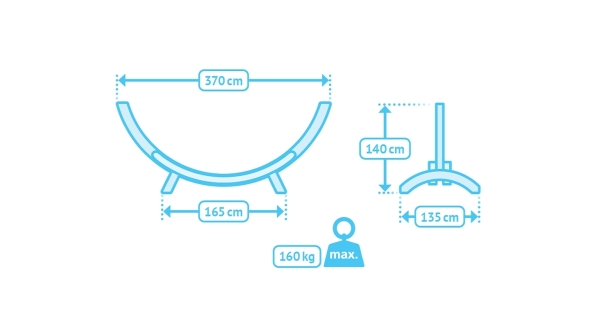 Elipso je vhodný pre hojdacie siete o veľkosti Double a detskej siete Moki Max - teda pre siete s celkovou dĺžkou do 350 cm.