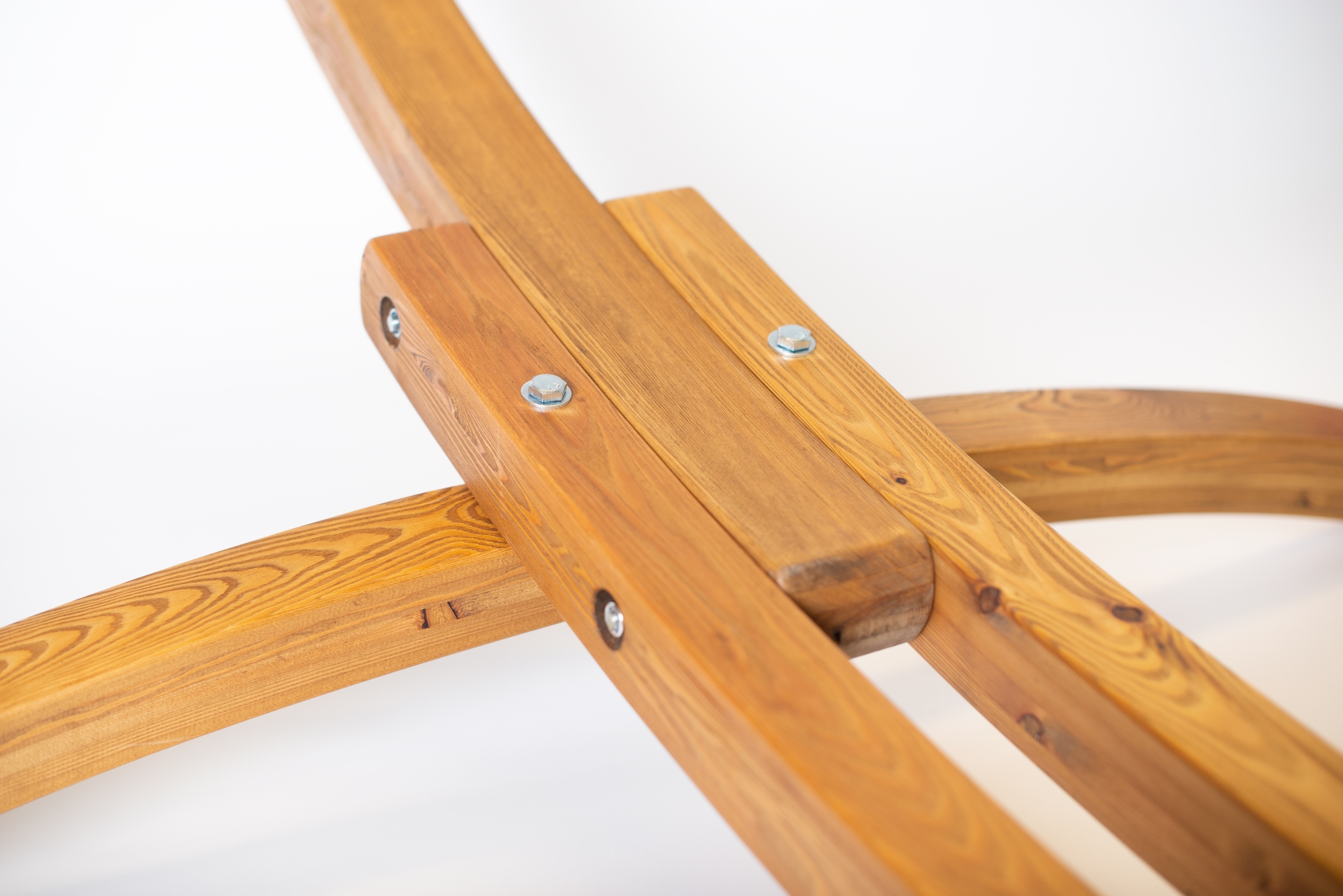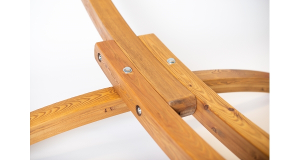 Drevený stojan Elipso je vyrobený zo sibírskeho smrekovca, ktorý sa vyznačuje krásnou kresbou, dokonale hladkým povrchom, vysokou pevnosťou a mimoriadnou odolnosťou proti poveternostným vplyvom. Tú zvyšuje aj výrobné technológie stojana využívajúce vysokotlakové spájanie vrstiev a hydroizoláciu. Stojan tak môžete nechať vonku celé leto. Zaiste vás poteší aj fakt, že drevo pochádza z ekologicky aj sociálne udržateľného lesného hospodárstva.