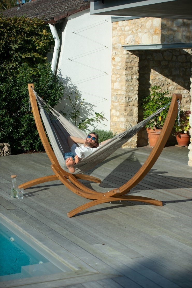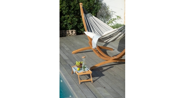 Najjednoduchší spôsob, ako zavesiť hojdaciu sieť - odolný stojan Elipso, spájajúci elegantný dizajn s prírodnými materiálmi, môžete využiť doma aj vonku.