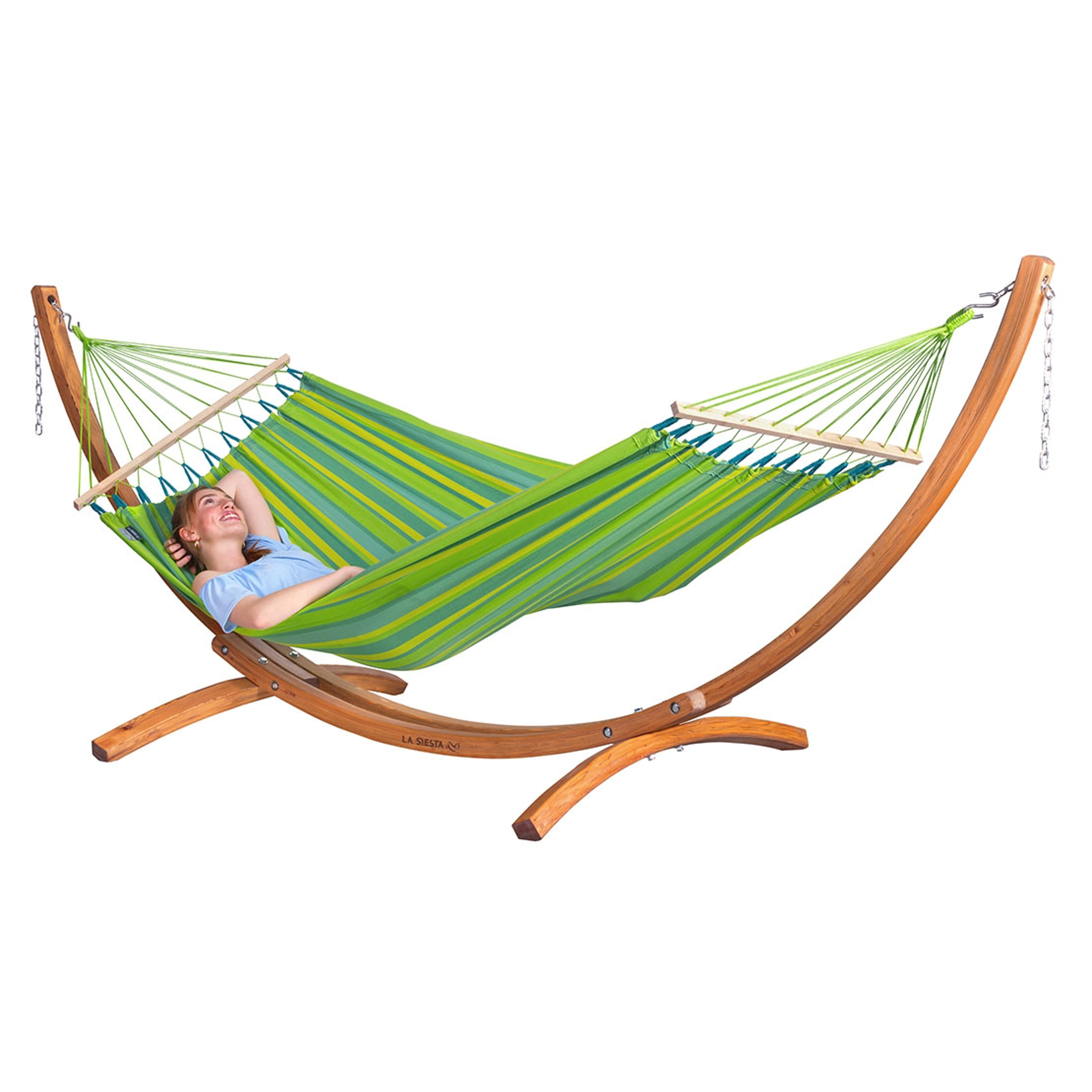 Či už ste si vybrali klasickú hojdaciu sieť alebo tú s rozpernou tyčou, elegantný drevený stojan Maera je najjednoduchší spôsob, ako ju zavesiť a užiť si bezstarostnú relaxáciu vonku na záhrade alebo doma.