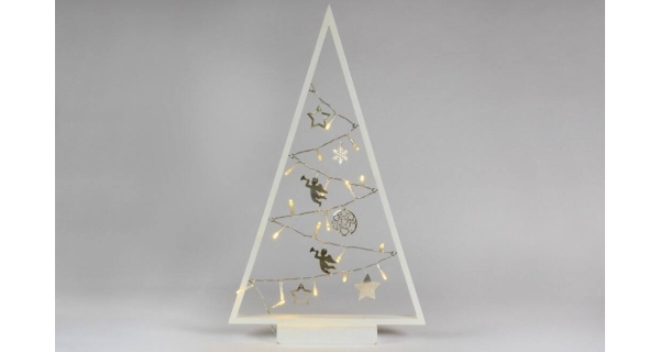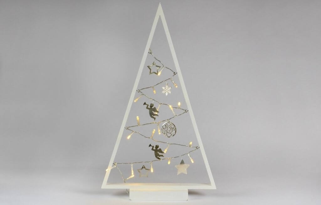 - materiál: biele drevo, LED reťaz, strieborné kovové prívesky